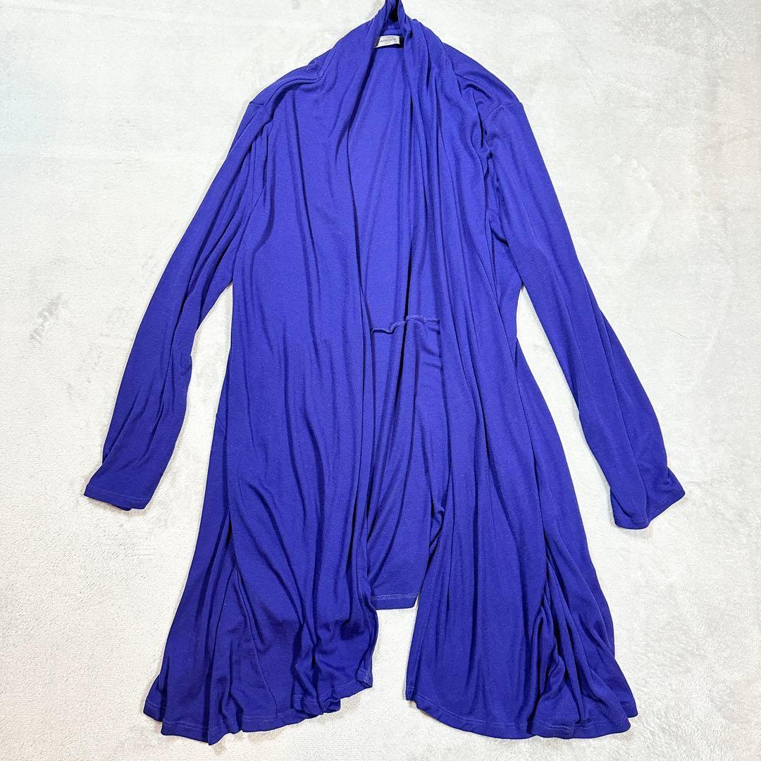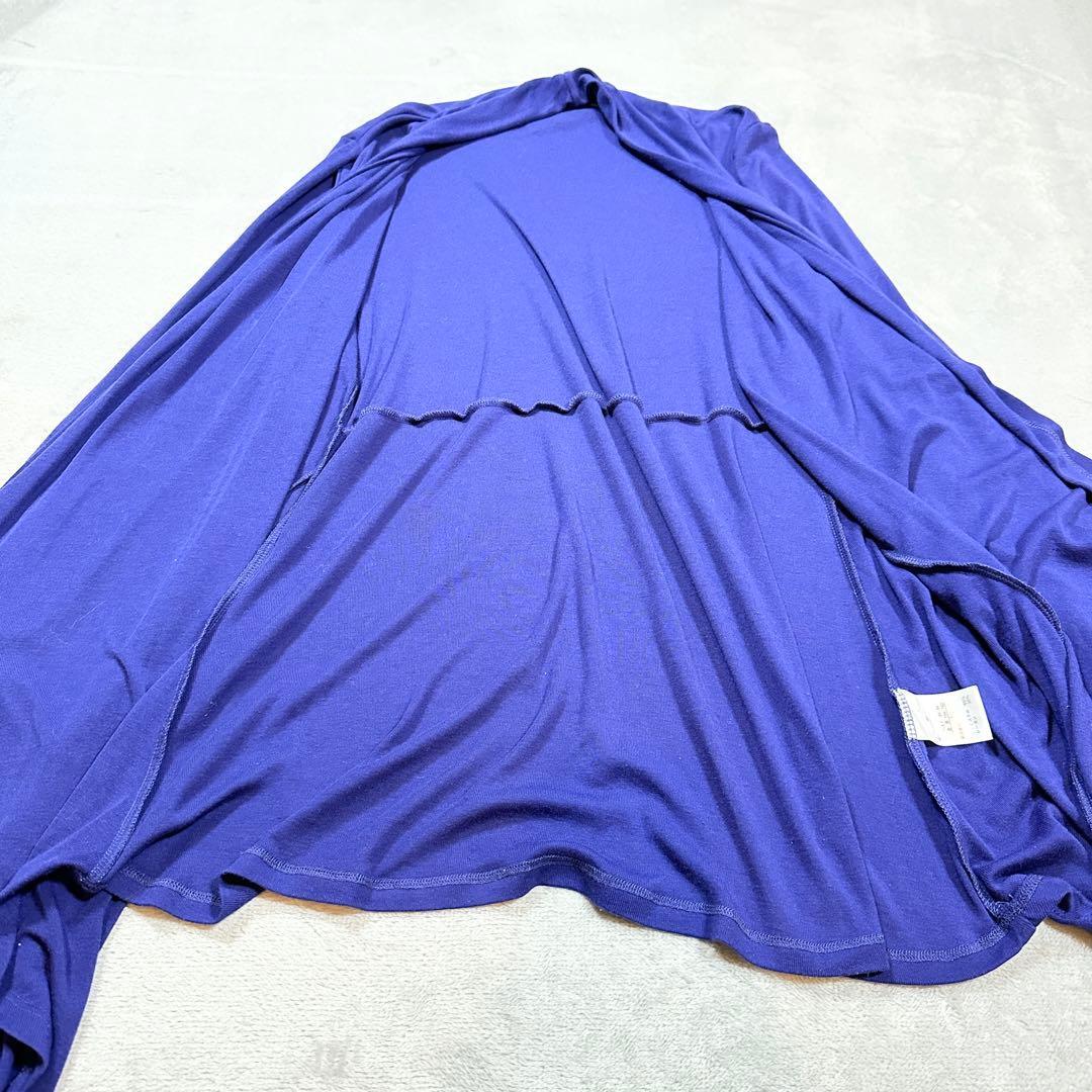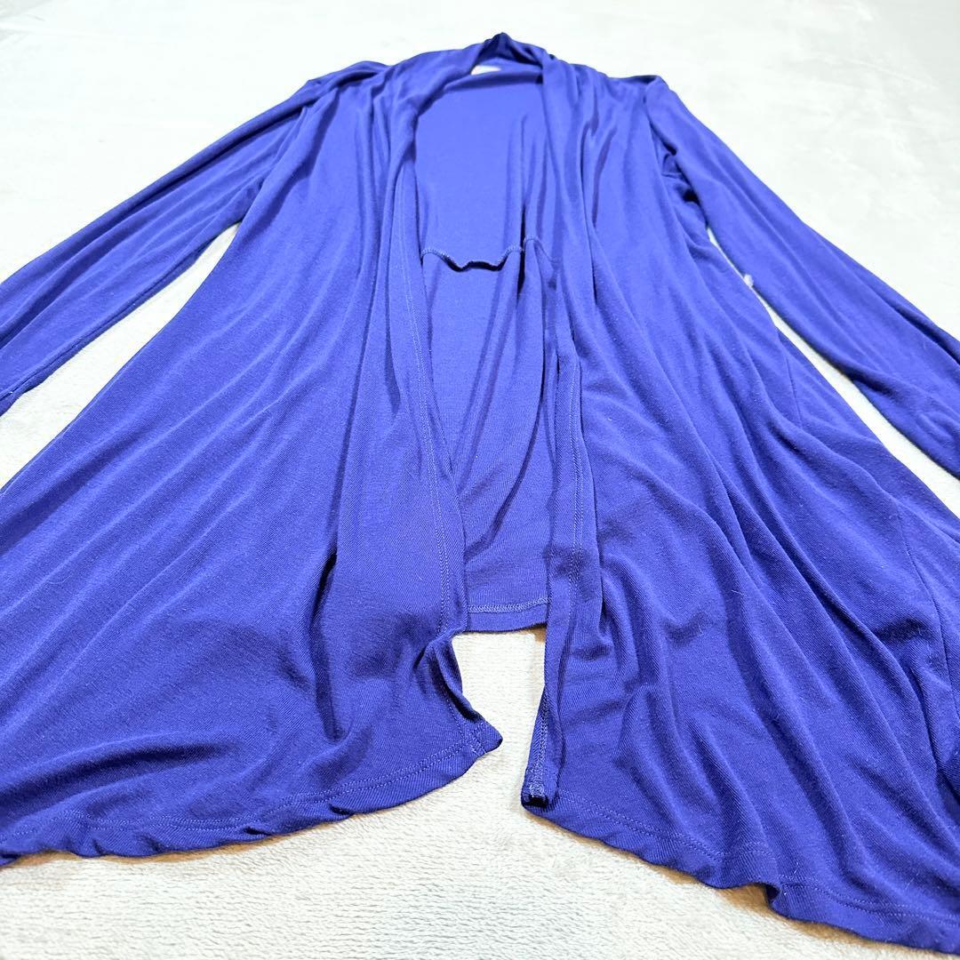 レーヨン混 長袖カーディガン 羽織り 透け感 シンプル 無地 ブルー L 9108FD