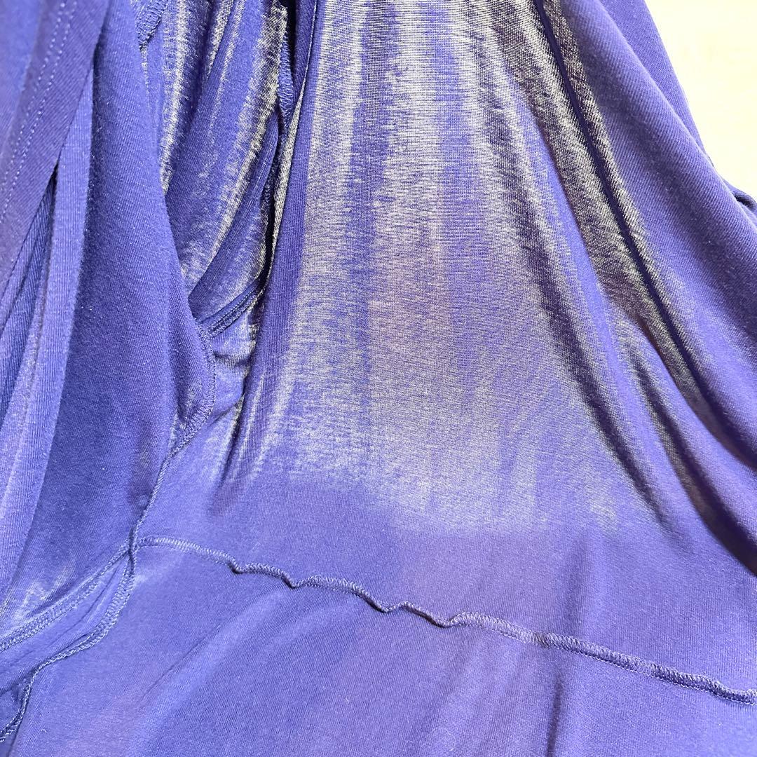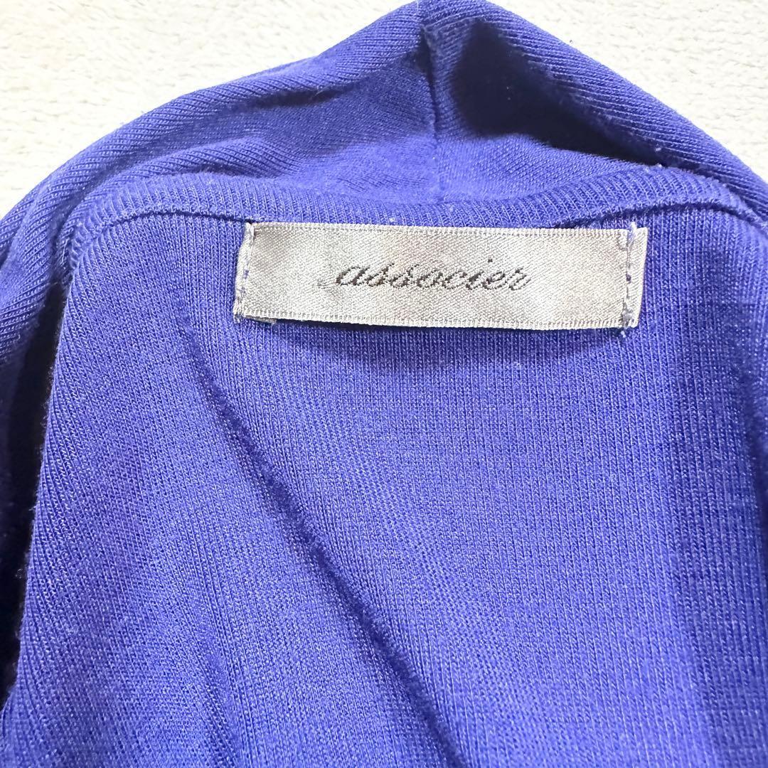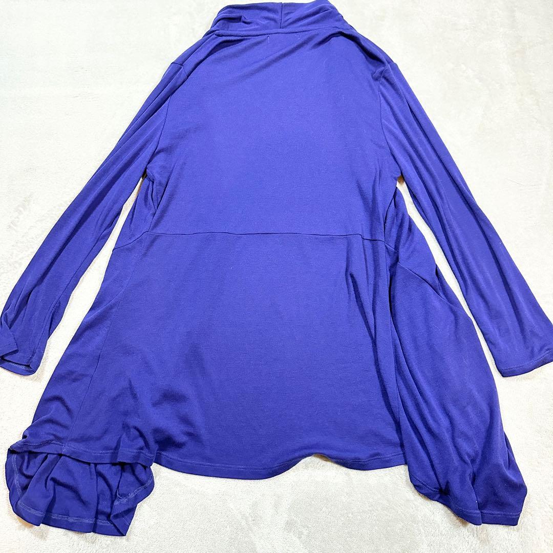 レーヨン混 長袖カーディガン 羽織り 透け感 シンプル 無地 ブルー L 9108FD