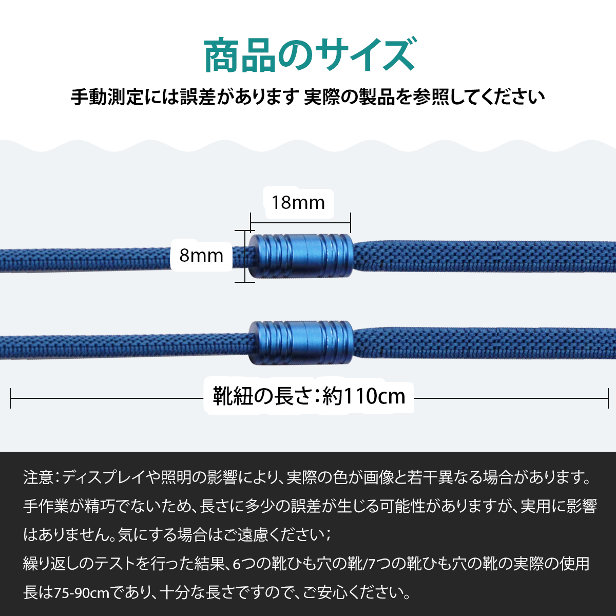 | ご注意 | 1.通常の伸縮性のない靴紐や丸く太い靴紐には使用できません。 2.手工測定にはわずかな誤差がありますので、ご理解ください。 3.ディスプレイや照明の影響により、実際の色が画像と若干異なる場合があります。 |