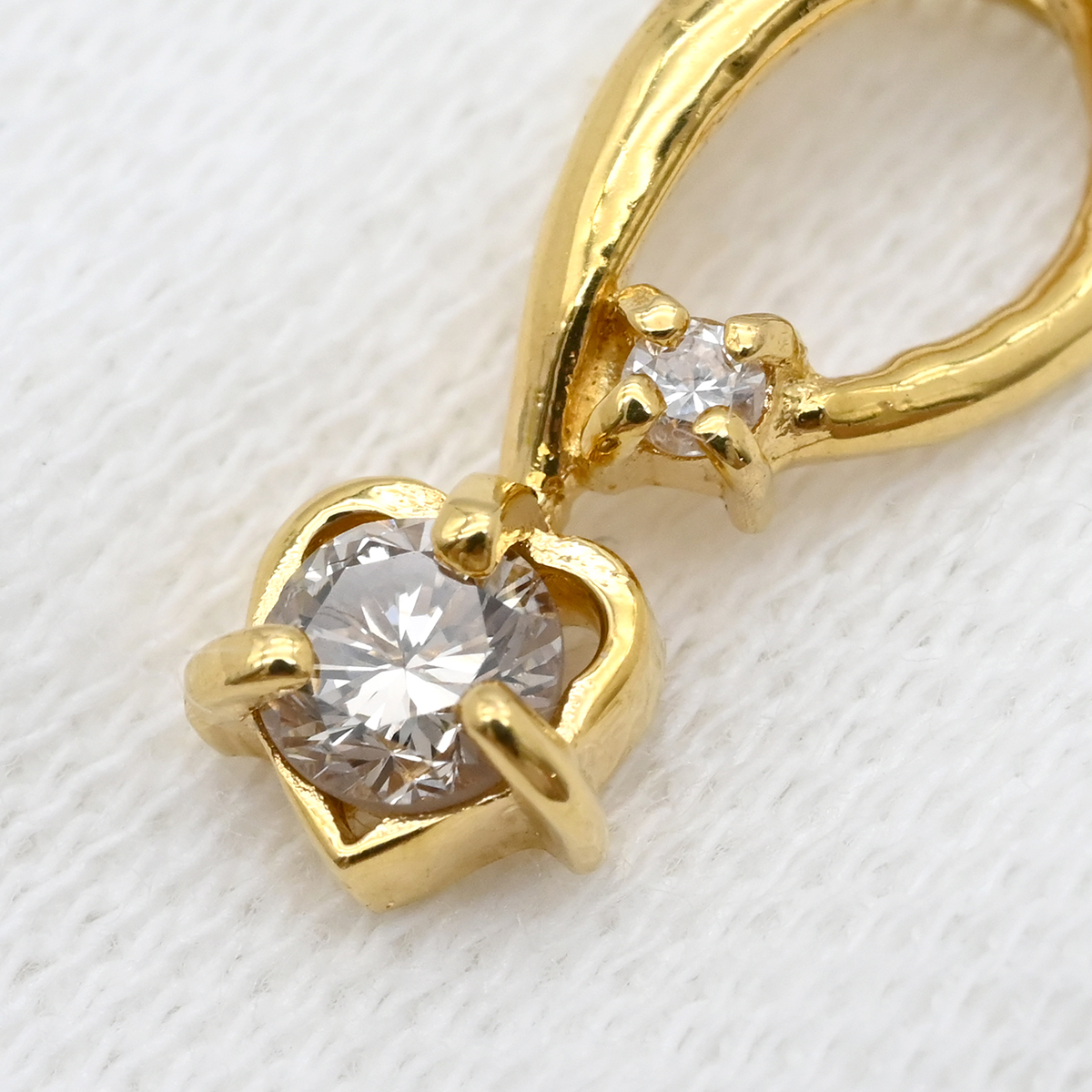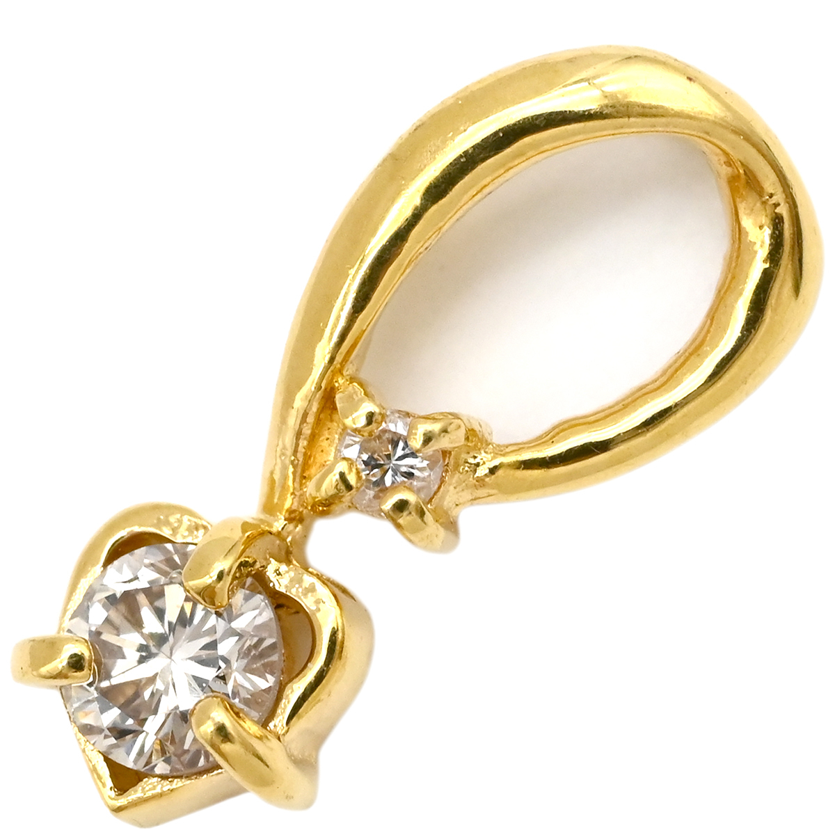 ペンダントトップ K18YG ゴールド ペンダントヘッド Au750 18K 18金 1P 1石 1粒 ダイヤ ハート 中古