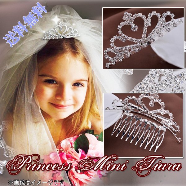 送料無料 プリンセス ミニ ホワイト ハートティアラ / お姫様 ヘアアクセサリー フォーマル ウェディング 発表会 結婚式 子供用 姫