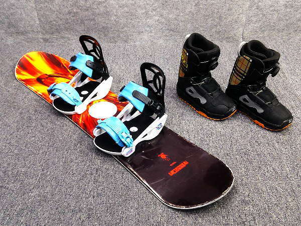 1990★MISSION Jrスノーボード 100cm★中古/3点セット/ビギナー/チューンナップ済み/オールラウンド/ボアブーツ