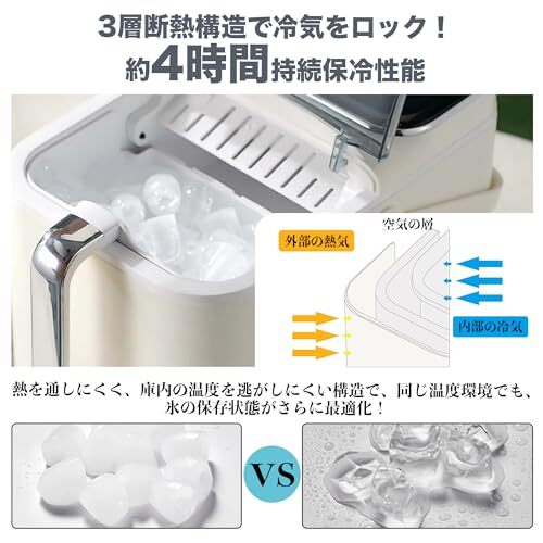 【最短6分で氷ができる】BelleLife製氷機は最短6分で氷を作成可能。一度に9個の氷を作成でき、急な来客やパーティーにも迅速に対応できます。1.5Lの大容量タンクと付属の氷スコップで、いつでも簡単に氷を取り出せます。● 【約4時間持続保冷性能】熱を通しにくく、庫内の温度を逃がしにくい構造で、 同じ温度環境でも、氷の保存状態がさらに最適化