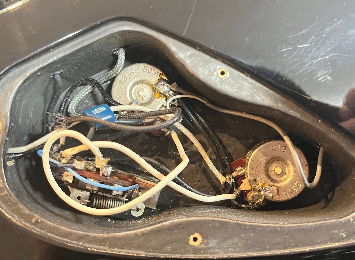 ESP SEA-250 ANTHEM HIROYA MODELでございます。 過去の公式カタログなどからESP SEA-250の一本と見受けられますが、詳細な文献や情報が残っておらずオーダーモデルの可能性もございます。 全体的に傷や打痕、塗装剥げなどの使用感が見受けられます。 ネックとボディのジョイントスクリューが一本のみ空転しているしている状態ですが、演奏使用に於いて目立った問題はございません。 2つのコントロールがマスターボリュームとして動作しており、セレクタースイッチが機能していない状態です。 フロント/リアピックアップともに出力は確認済みです。 ネックの反りに関して大きな問題点はございませんが、トラスロッド回転残が約180度程と少なめです。 その他詳細は画像にてご確認くださいませ。 重量:3.6kg 上記内容により、こちらは現状品として出品させていただきます。 是非ともご検討くださいませ。 ※低評価アカウントからの入札に関しまして、当社が悪質と判断した場合には入札取り消しを行わせていただく場合がございます。 |