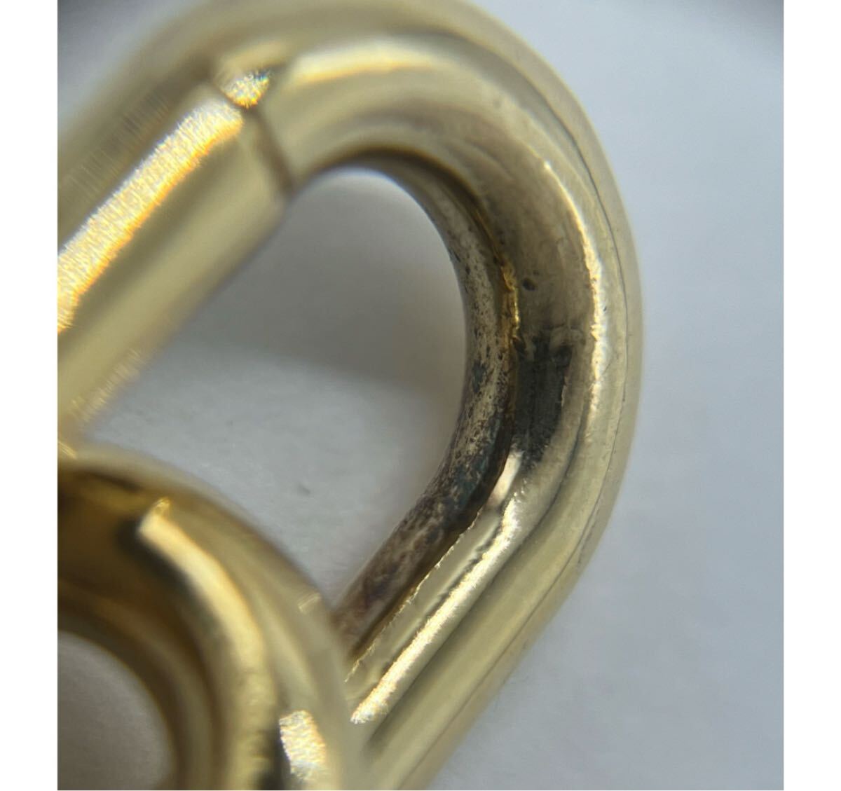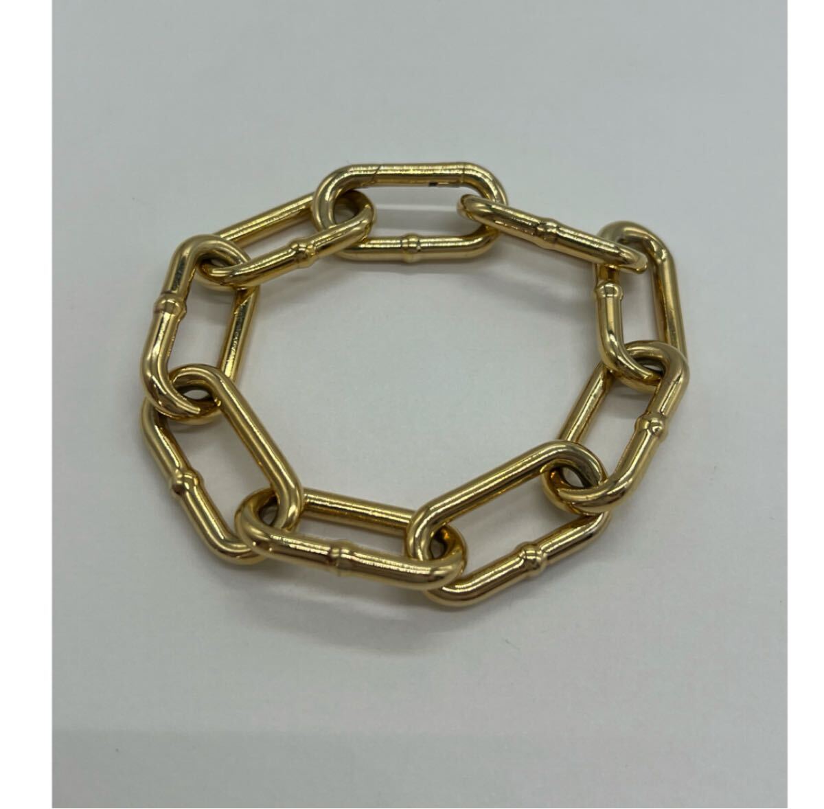 ゴールドカラーでデザインされたボリュームのあるチェーンブレスレットは、着用時に存在感を放ち普段のコーディネートの良いアクセントになるお品物でございます。