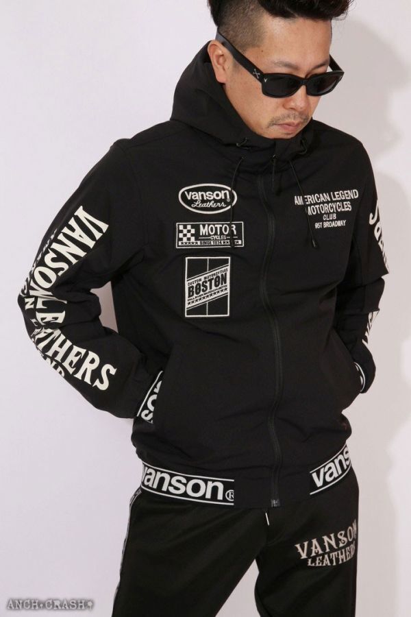 VANSONらしいモーターサイクル感が漂うロゴを刺繍&ワッペンで散りばめた、フルZIPパーカーが登場!
