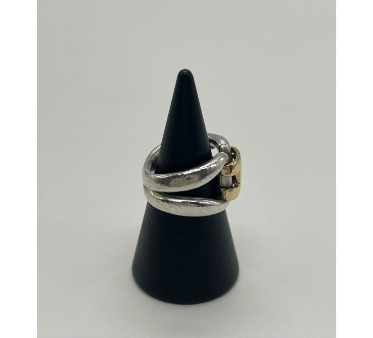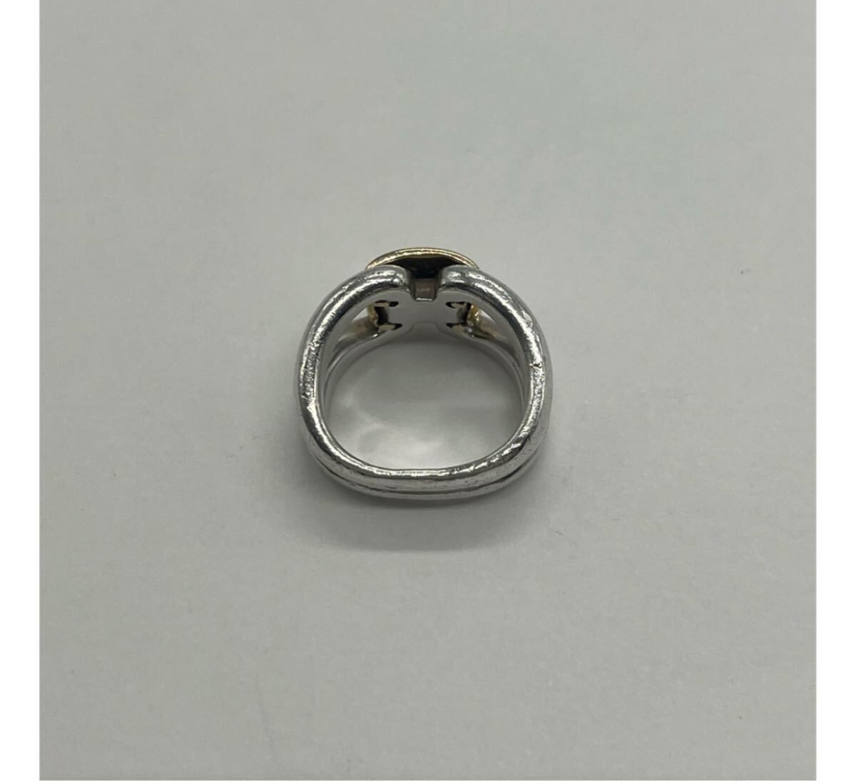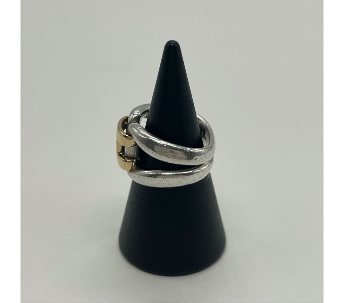 デザイン性のあるシルバーのリングにHロゴがゴールド素材で配置されたリングで重厚感と上品さを兼ね備えた印象のリングでございます。