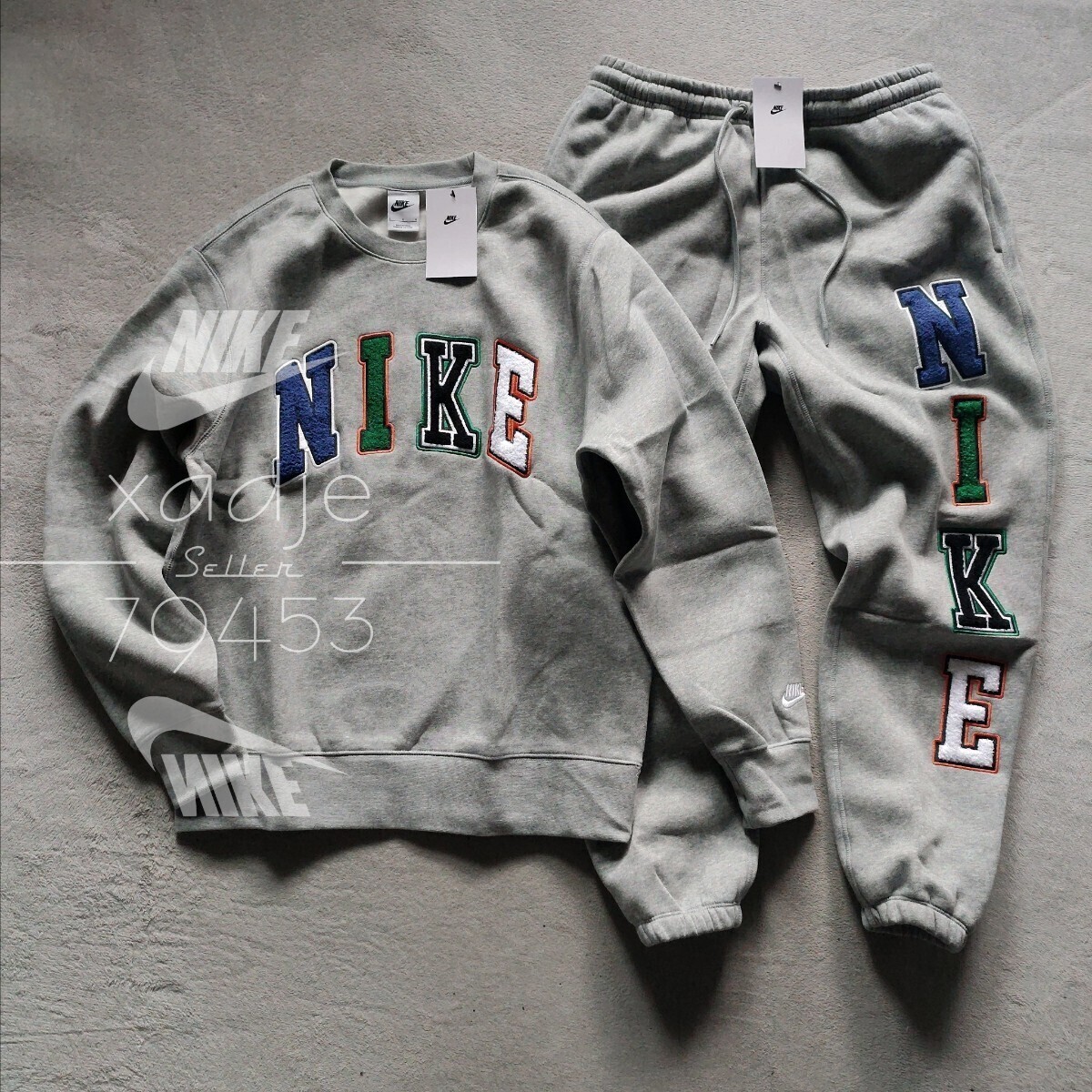 新品 正規品 NIKE ナイキ 立体 ロゴ 上下セット スウェット トレーナー パンツ セットアップ 灰 グレー 定価26180円 裏起毛 L