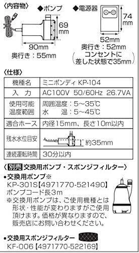 【大幅値下げ】工進(KOSHIN) 家庭用バスポンプ AC-100V KP-104 風呂 残り湯 洗濯機 最大吐出量 14L/分 (3mホース時) 水道 ホース 内径 15mm