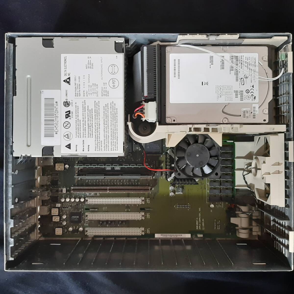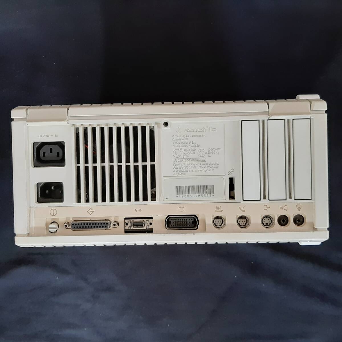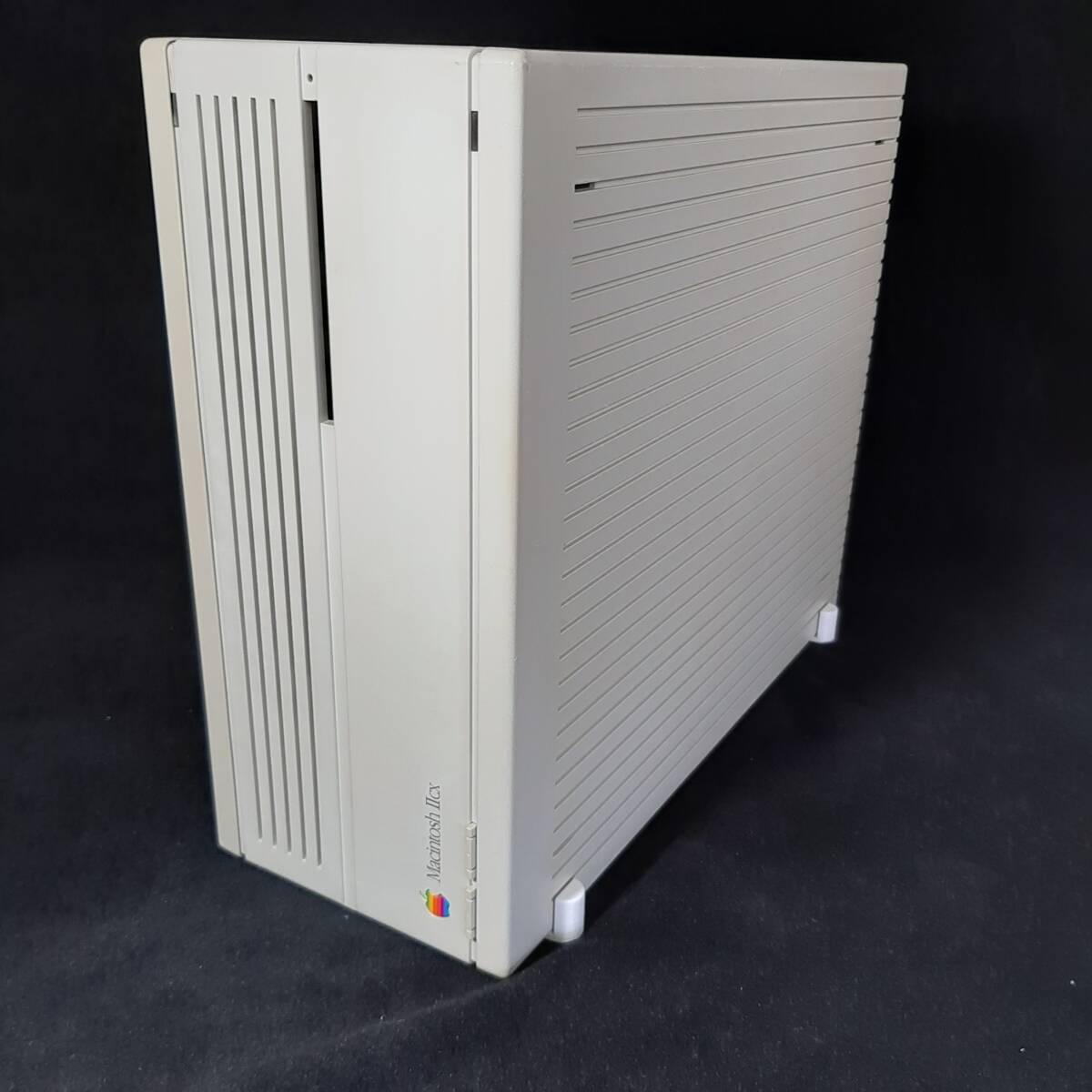 | ★商品説明★ | IIcxの筐体にPowerMac7100 80 のロジックボードを組み込み。 後面端子部はPM7100オリジナルのパネルを組み込み。(写真参照) メモリは72MB L2キャッシュ 256KB ハードディスクはサーバー用Ultra320、SCA2 73GB。 モーター回転音はかなり静かです。 2GBのパーティション2つと、4GB、61GBのワークパーティションを マウントしています。 Mac OS 8.1がインストールされています。 アクセスLEDもグリーンで点滅します。 筐体は、クリーニング済みですが、使用に伴う小傷はございます。(写真参照) NuBus拡張スロットのカバーは3つそろっています。 ゴム足はQuadra700風のスタンドを3Dプリンタで製作したものをつけています。 クロックバッテリはコイン電池ソケットに電池を取り付けてあります。 以下の動作確認済みです。 内蔵ハードディスクから起動 サウンドOK FDDの読み込み、書き込み。 オートイジェクト用ギアを3Dプリンタ製に交換。動作音がうるさ目ですが動作しています。ただし耐久性は保証しかねます。 高密度ビデオポートからのビデオ出力を確認(写真参照) 高密度ビデオポートから15ピンD-sub端子への変換アダプタは付属しません。 ご自身でご準備をお願いします。 ◆付属品 なし(ACコードもなし) | |