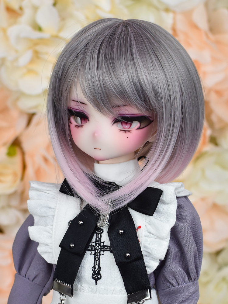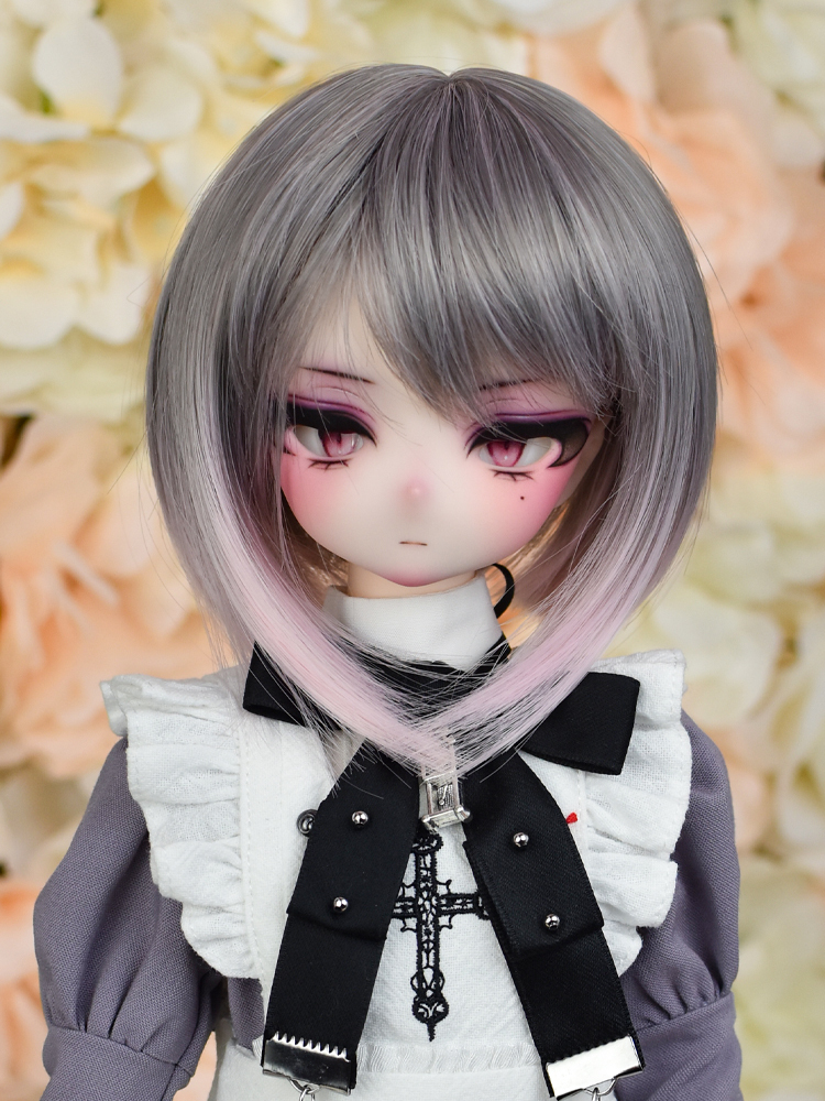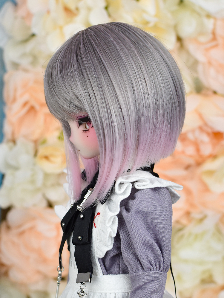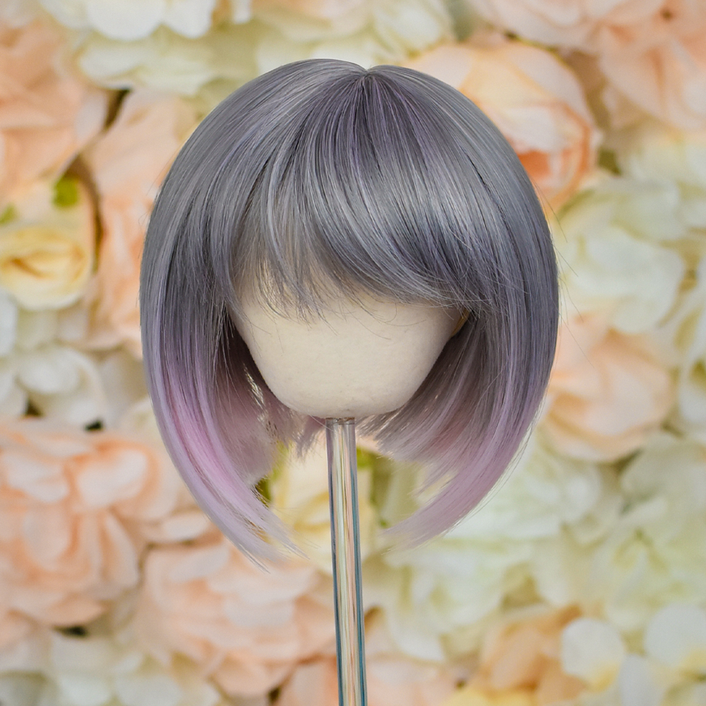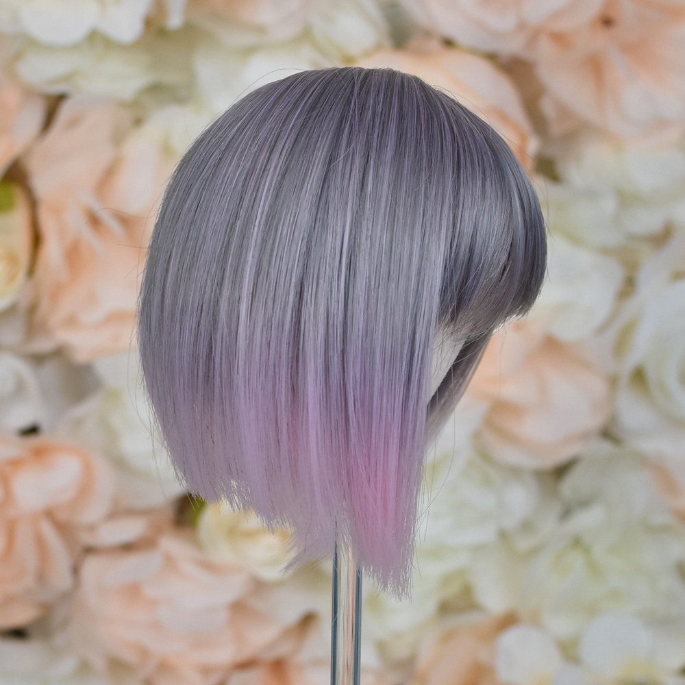 DDサイズ MDDサイズ ウィッグ 前下がりボブ グレー ピンク グラデーション 9インチ  耐熱繊維 新品 SDサイズ ドールウィッグ