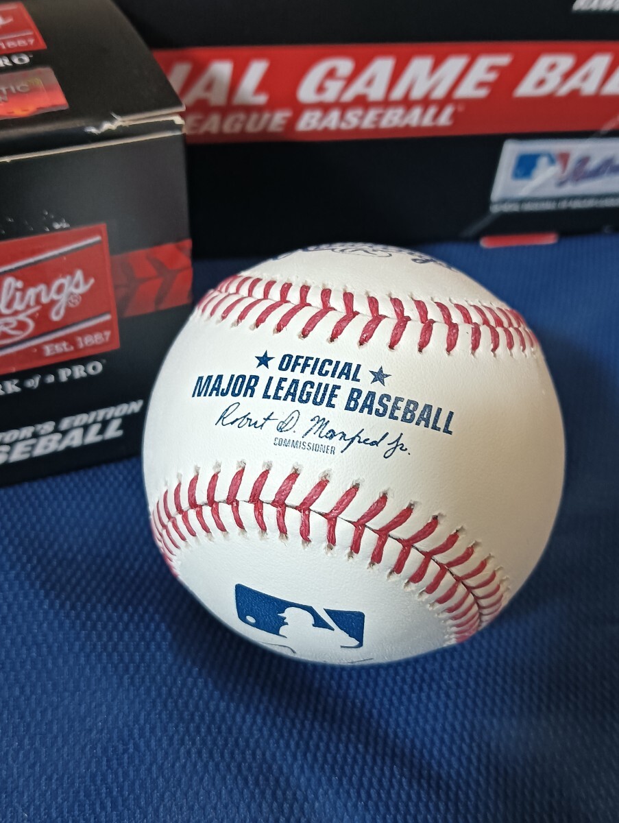 未使用のMLB試合球にサインされております。