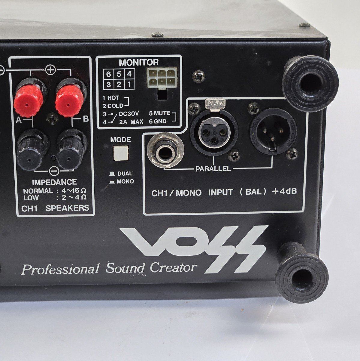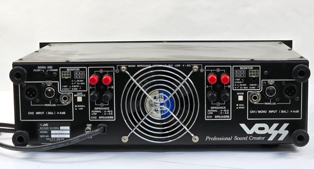 ビクターのパワーアンプが入荷致しました。 細かい傷や汚れなどが多少見られます。 背面フォノジャックを利用し、CH2からの音出しは確認できましたが、 CH1はPROTECTランプが点灯したままで、音声が出力できませんでした。 片側からしか音声が出力されないため、現状品としての出品となります。 ご了承の上、ご入札ください。 詳しい商品状態につきましては写真よりご確認ください。 重量商品のため西濃運輸営業所止めでの配送とさせていただきます。 法人様に限り直接配送可能ですが、一般の方は最寄りの営業所止めとなります。 この機会に是非ご検討宜しくお願い致します。 【特徴】