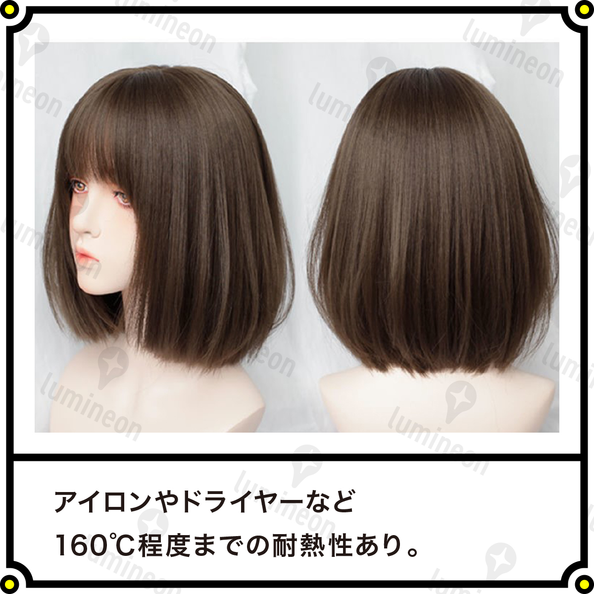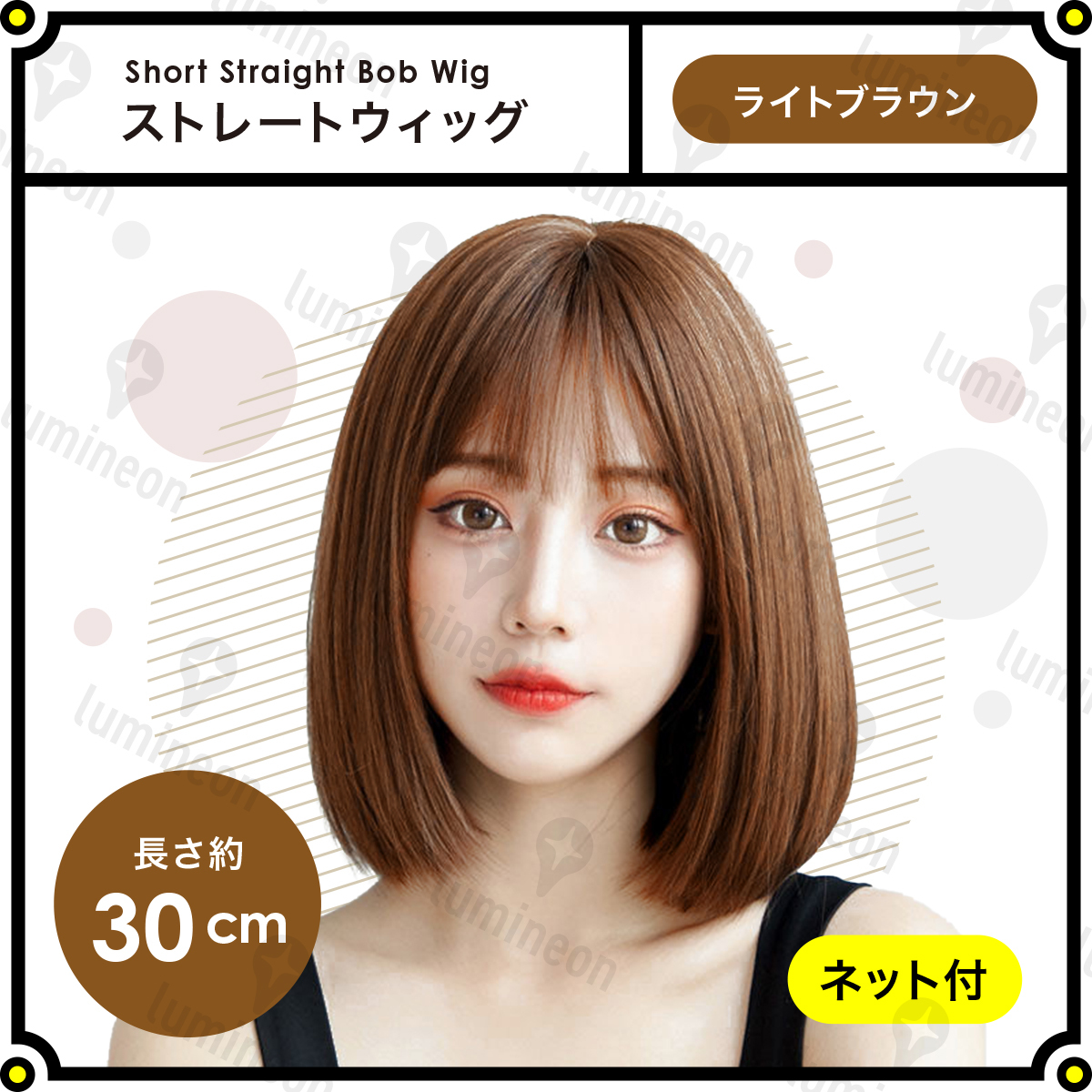 ウィッグ フル ストレート ショート ボブ ライトブラウン 茶髪 女性用 レディース 自然 おしゃれ用 かわいい 人毛のような質感 g197b 1