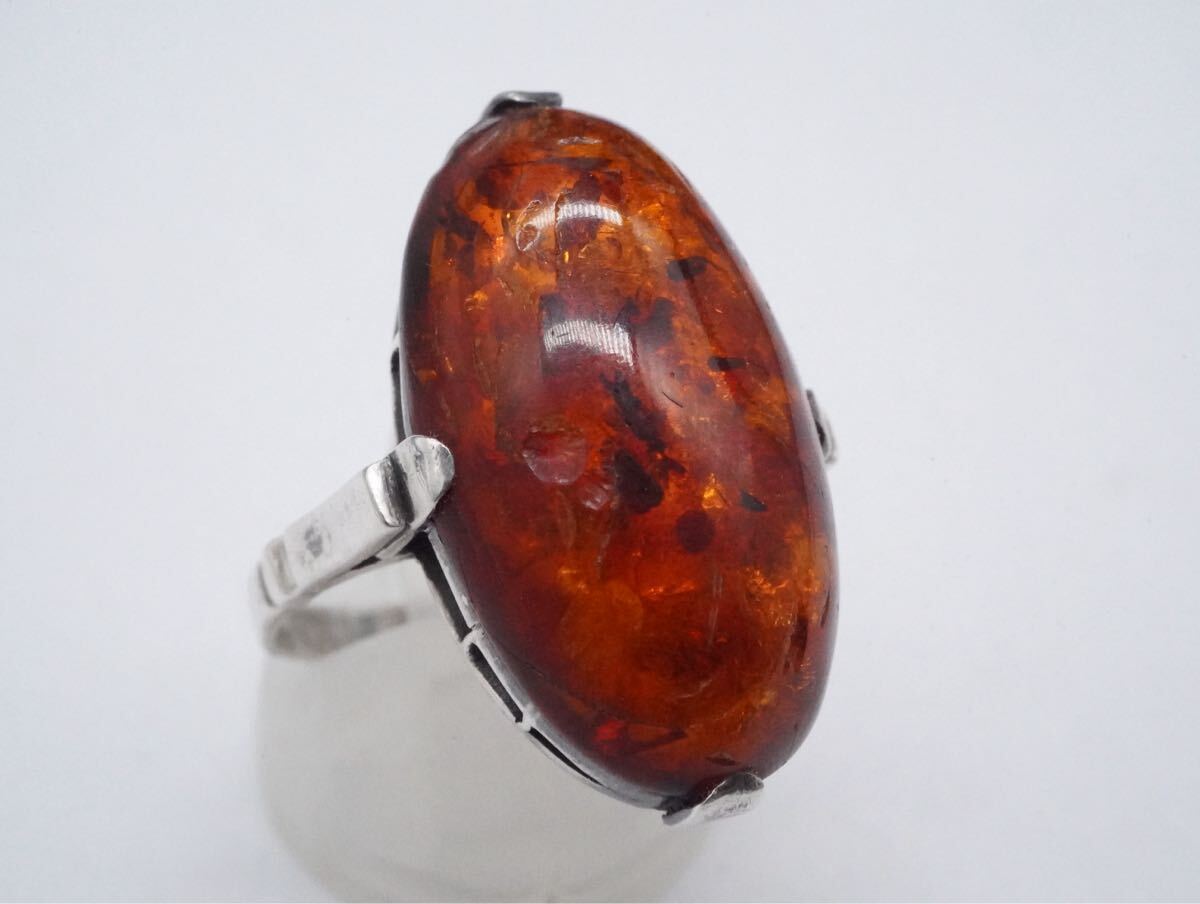 【207】18号 琥珀 こはく アンバー SILVER シルバー 指輪 リング アクセサリー TIA