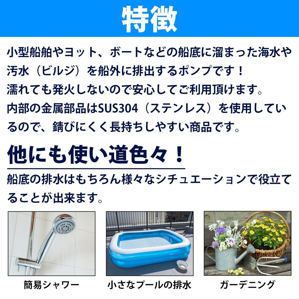 商 品 説 明1分間に約126Lの汲み上げ能力!