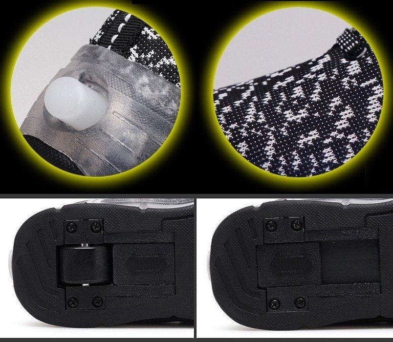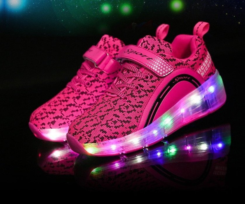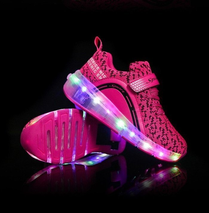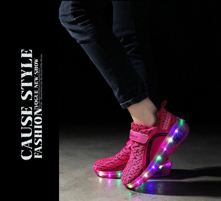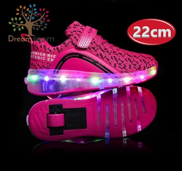1スタ☆光る☆LED ライトアップスニーカー&ローラーシューズ 一体型 【K-166ピンク 22cm】夜間 スケート靴 反射材 ジョギング 自転車