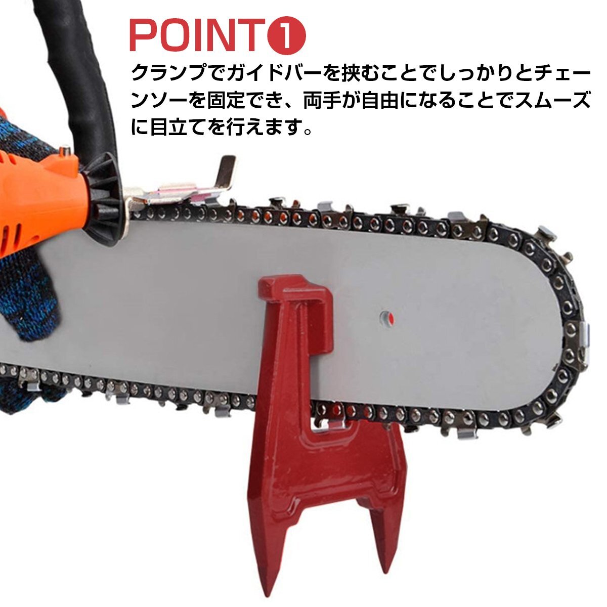 商 品 説 明薪割台や切株などに打ち込んでガイドバーをはさみ、チェンソー本体を固定し