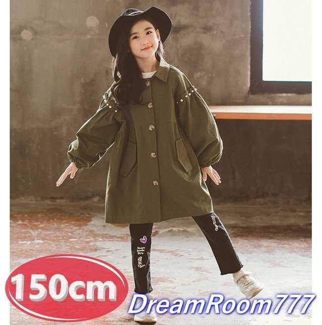 【150cm】バルーン スプリングコート カーキ アウター ジャケット 子供服 女の子 韓国子供服 モッズコート 秋 春物