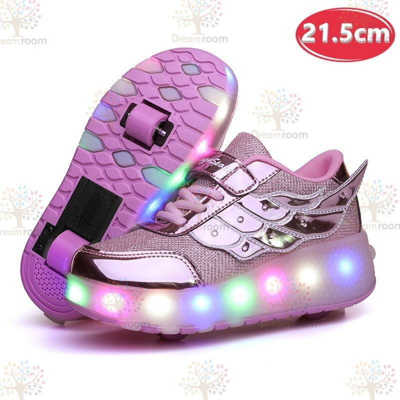 光る☆LED ライトアップスニーカー&ローラーシューズ 一体型 【K-374メタルピンク 21.5cm】夜間 スケート靴 反射材 ジョギング 自転車