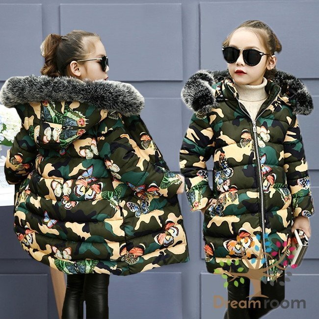 【160cm】 ダウンコート 迷彩柄 カモフラージュ 子供服 アウター 女の子 中綿 ロングコート 韓国子供服