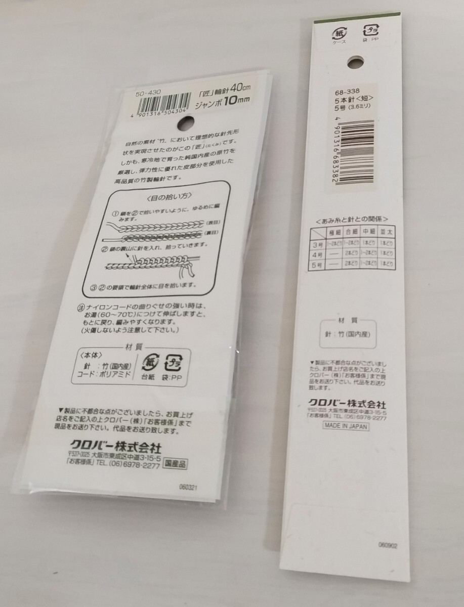 未開封 ★ Clover クロバー 輪針 匠 & 5本針 5号 2個セット ★ 竹針 あみ針 編針 輪編み 手編み 編物 帽子 模様編み 毛糸 手芸 手作り 道具