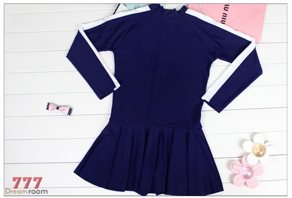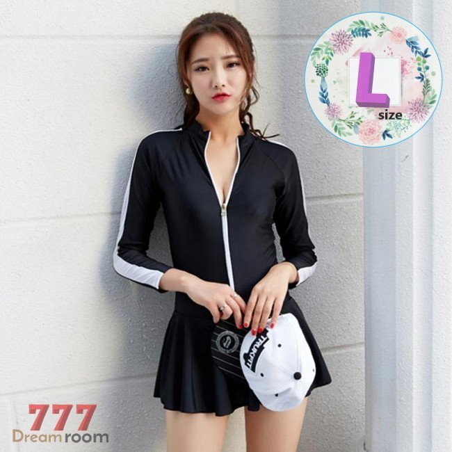 lady's サイドライン ラッシュフレアワンピース ビキニ【ブラック L】 K-247 水着 ラッシュガード 長袖