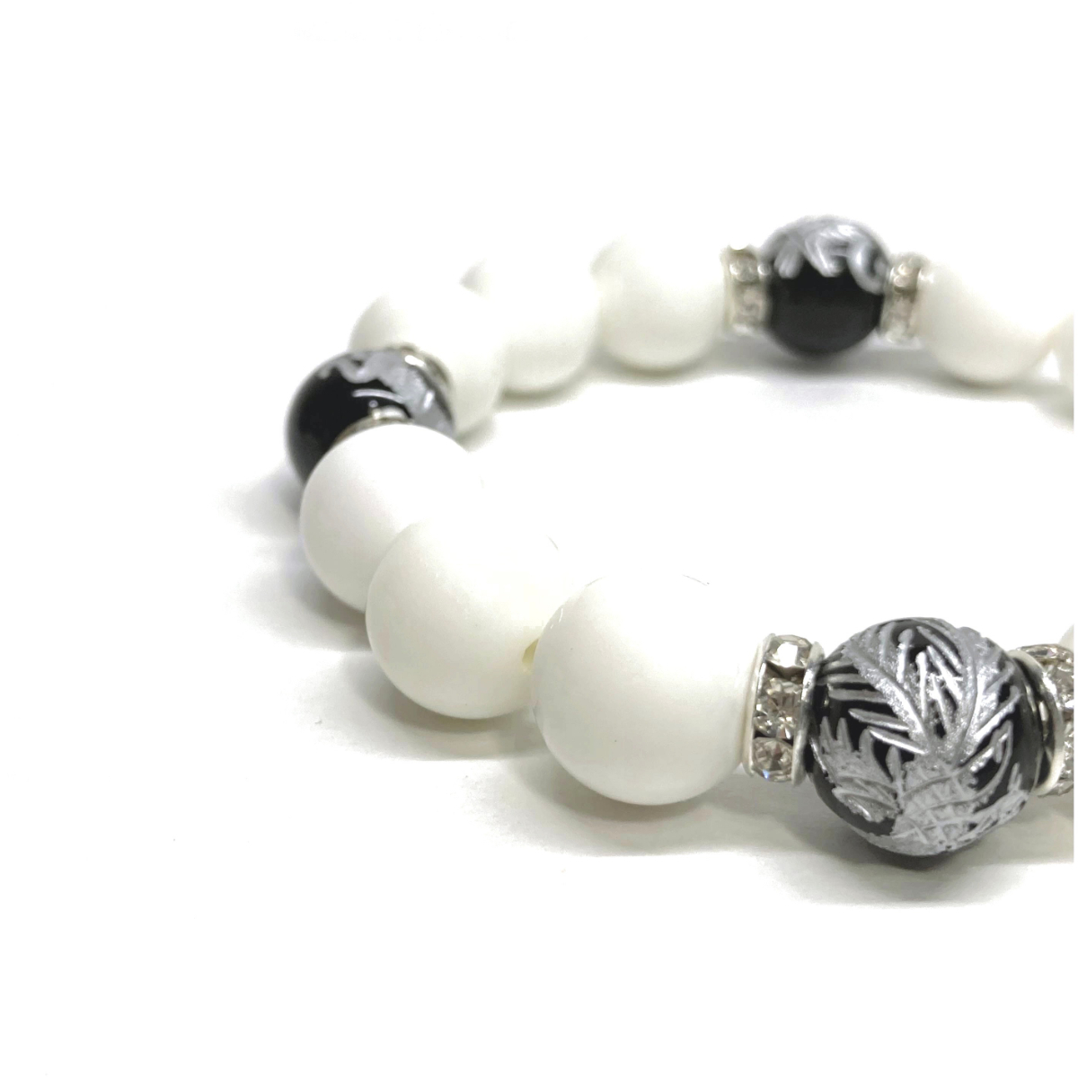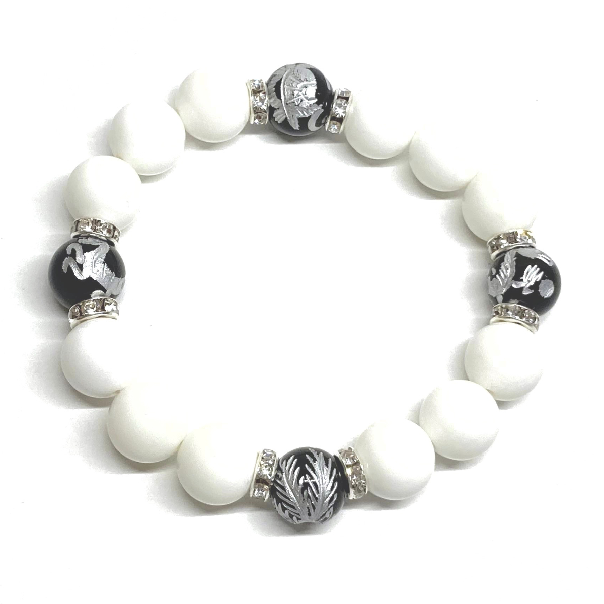 こちらは、四神獣銀彫オニキとホワイトオニキスを組み合わせたパワーストーンブレスレットです。四神獣は、中国の伝説で4つの方向(東西南北)を守護する神聖な神。四神獣、厄災から身を守り、多くの運気を呼び込むと言われております。石大きさは程よくインパクトのある12mm玉で内周 約17cmです。 数に限りがございますので気になる方はお早めにどうぞ。