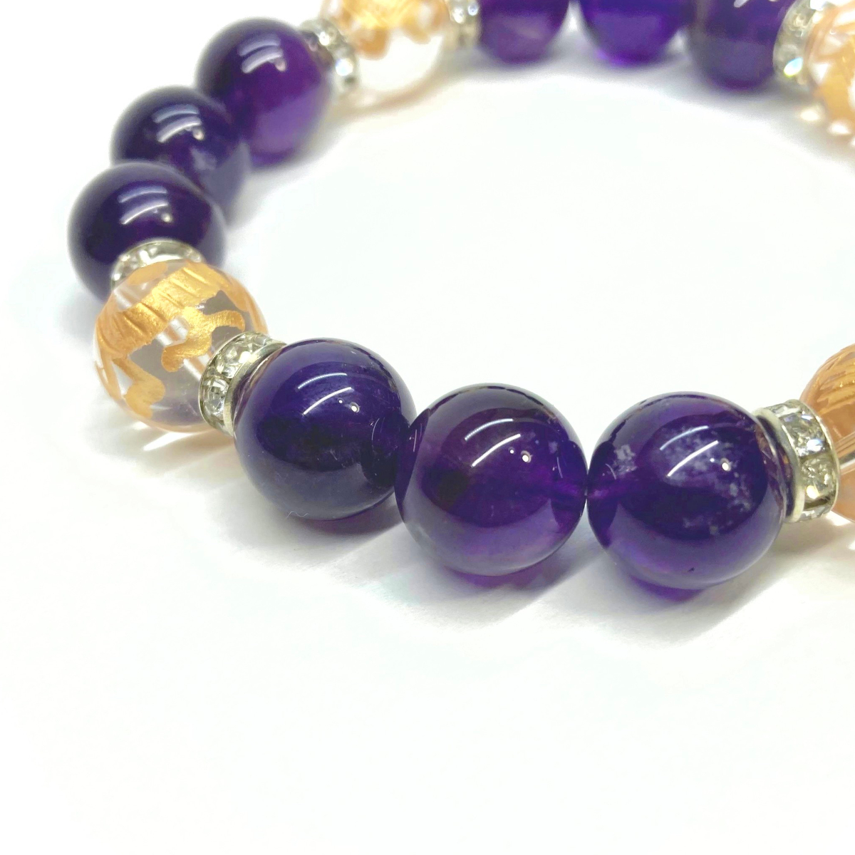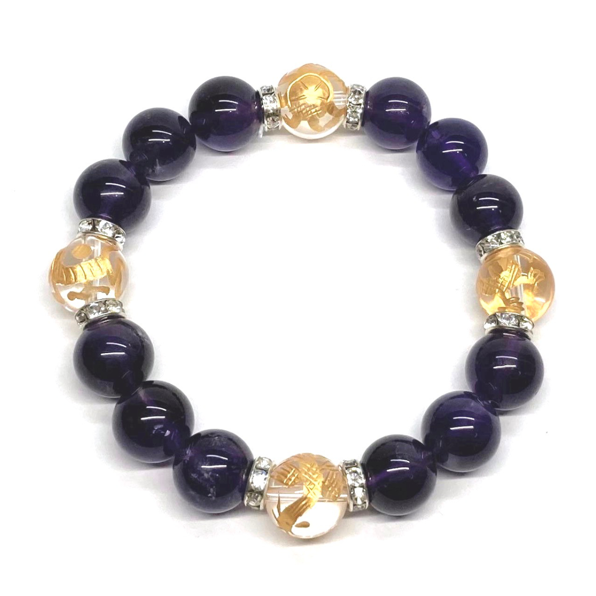 四神獣金彫水晶×アメジスト 12mm パワーストーン ブレスレット天然石 青龍 白虎 玄武 朱雀 運気上昇 お守り 金運 四神獸 四神相応 S