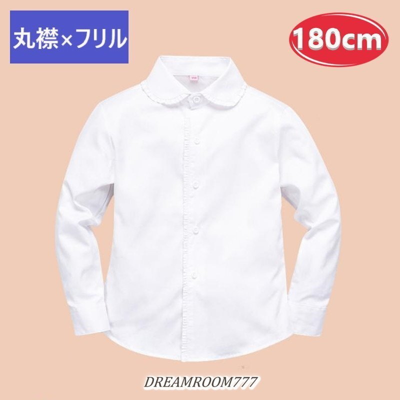 綿100% 丸襟×フリル ブラウス【180cm】ワイシャツ 白シャツ 学生服 フォーマル 冠婚葬祭 制服