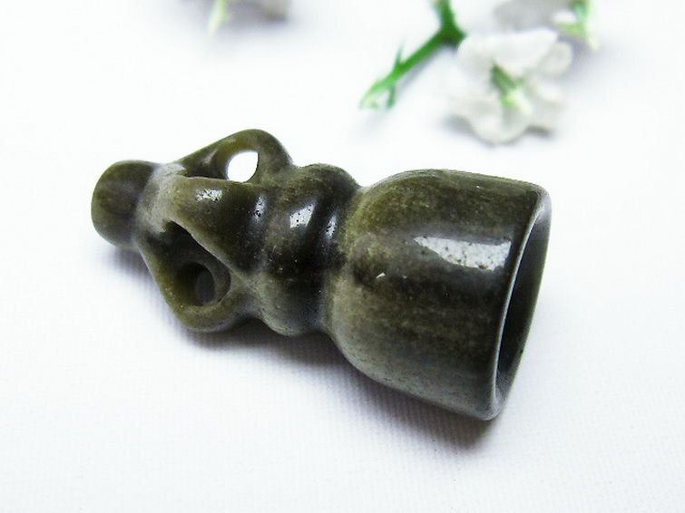 | ■商品名: 密教法具 ゴールデン キャッツアイ オブシディアン ■商品ID: T142-2094 ■商品重量:約 5.1g ■商品サイズ: 高約:27mm 横約:14mm 厚約:14mm 【オブシディアン(黒曜石)】 オブシディアンは厳密には鉱物ではなく、火山の溶岩が急激に冷却されることによって生まれた天然ガラスです。 光沢のある黒色が特徴で、冷却されて凝固する際にマイクロライトと呼ばれる微粒子や気泡などを含むことで独特で美しいシラーを生み出します。 歴史は古く、旧石器時代にはすでに矢じりやナイフなど人々の生活に用いられ、魔除けの力を持つ祭祀の道具や護符としても珍重されていたといわれています。 オブシディアンは邪念や悪意が絡んだ人災から守るといわれています。騙そうとする人や不快な人から遠ざけてくれるとされているので、縁を切りたい物事や相手がいる方には変革への心強い後押しをしてくれるでしょう。 また、ネガティブな思考を払拭し現状打破のための決断力と行動力を与えるとされ、希望をもたらす石とも考えられています。 ⇒ オブシディアンをもっと詳しく ◆ワンポイント情報 オブシディアンはガラス質のため硬度があまり高くないことや、欠けたときの破片が鋭利になるので取り扱いには十分注意しましょう。また、塩分によって変質しやすいので塩を使った浄化は避けてください。 |