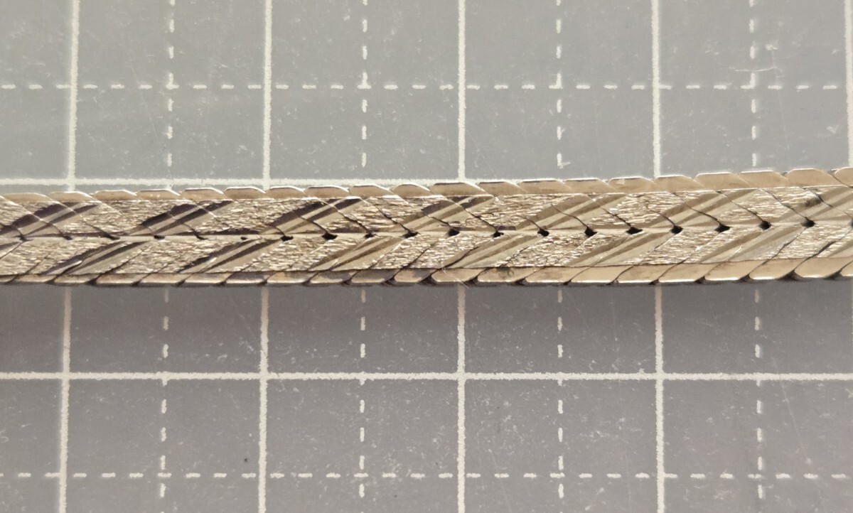 細く華奢なのでヴィンテージやアンティークの時計にいかがでしょうか。とても綺麗な柄が彫られています。腕の細い方向きです。