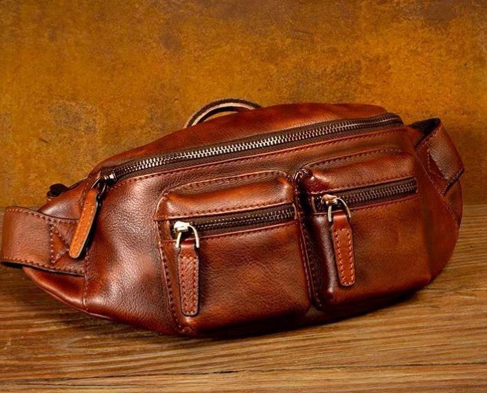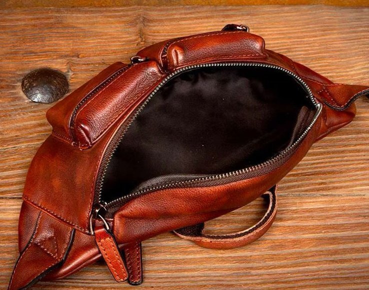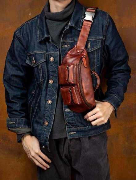 こちらは、頭層植鞣し牛革を使用したレトロ感あふれるハンドメイドボディバッグです。