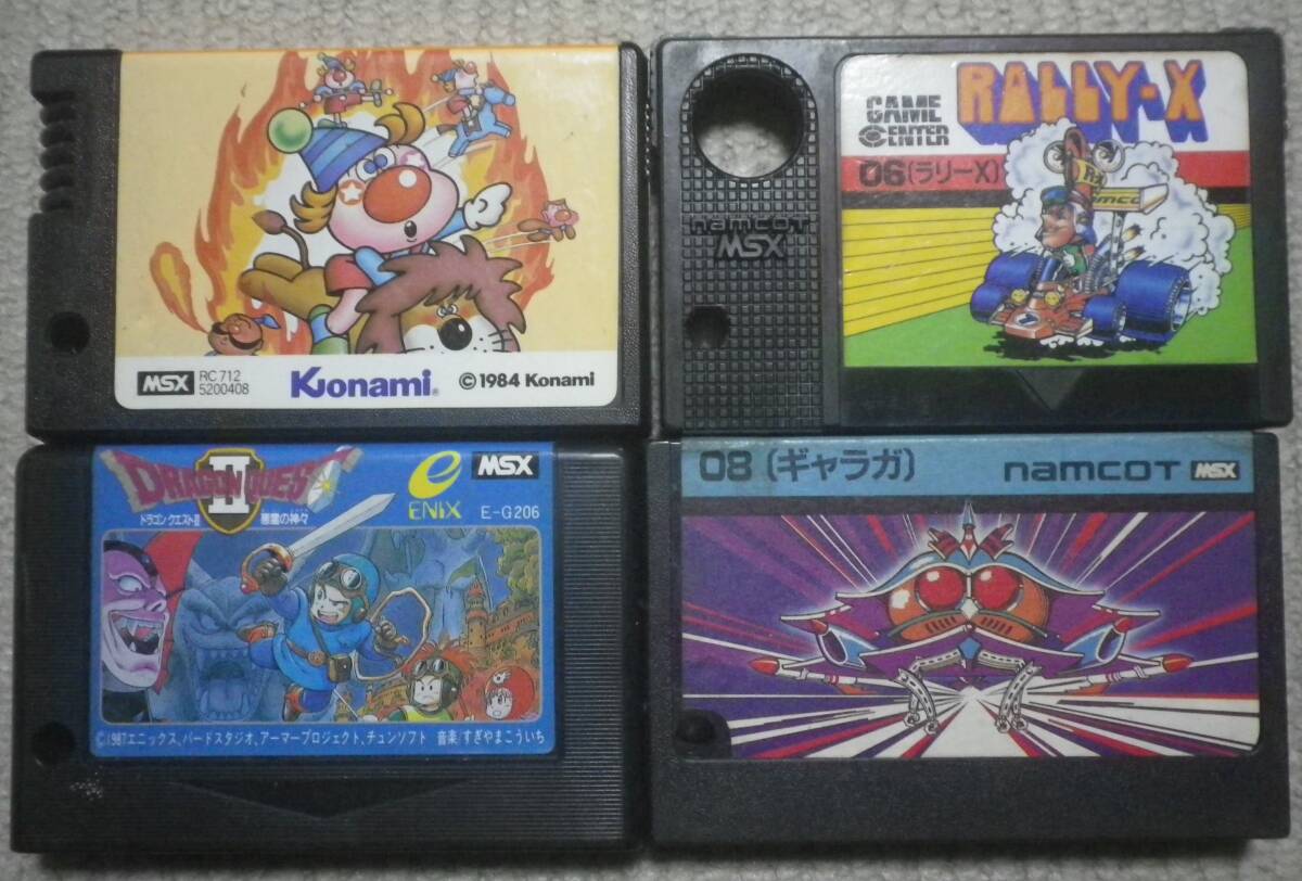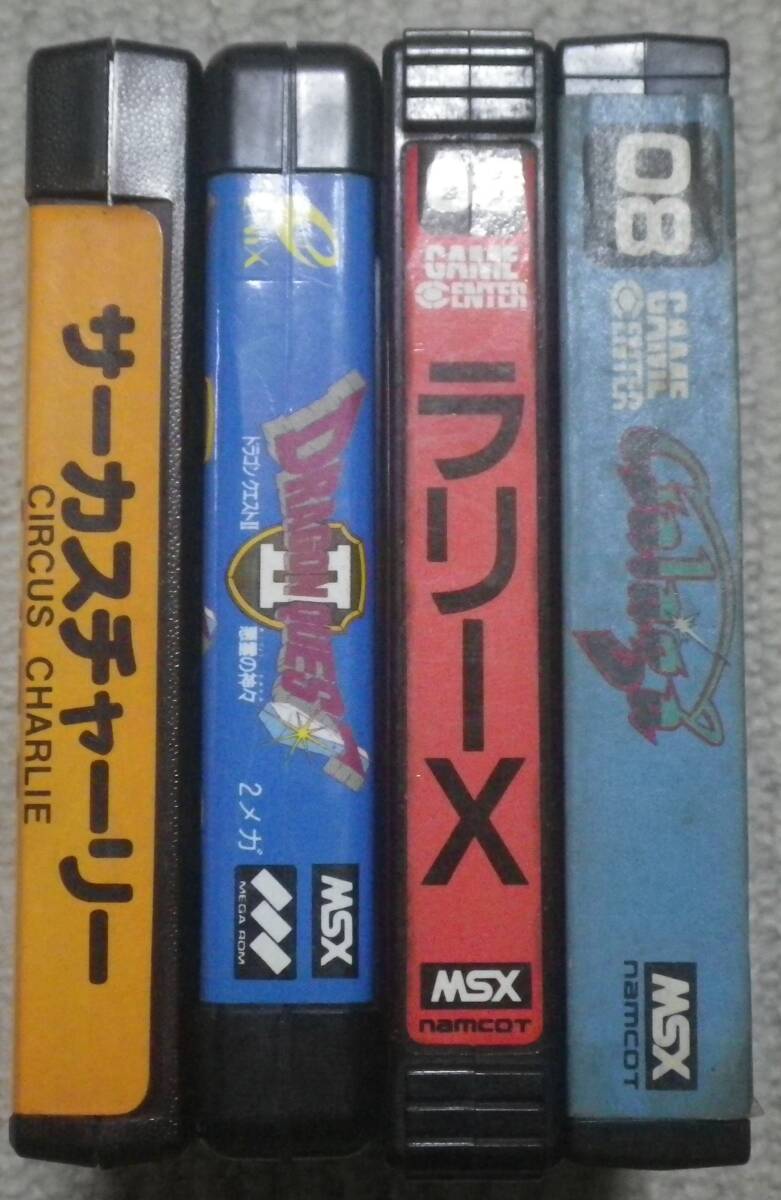 MSXのソフト「サーカスチャーリー」「ドラゴンクエストⅡ」「ラリーX」「ギャラガ」の4本セットです。