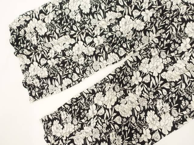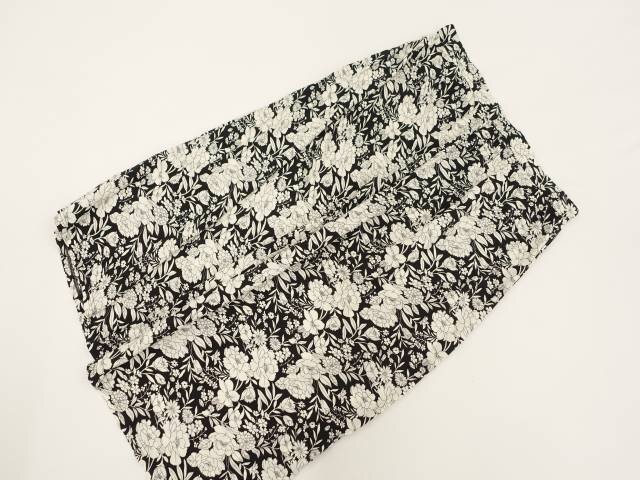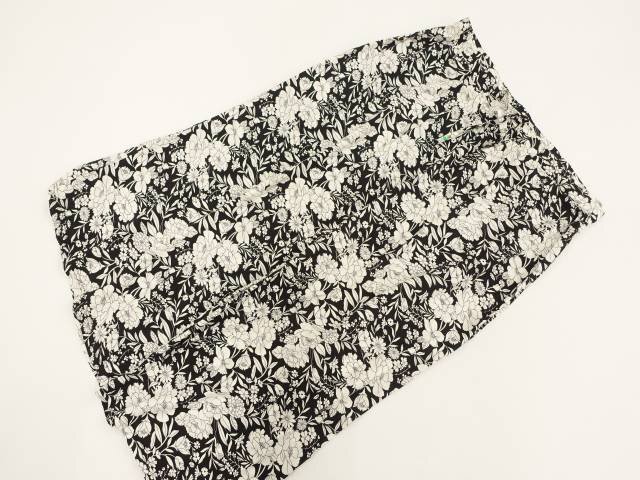 大きいサイズ 訳あり未使用品 ノータックイージーワイドパンツ 5L ブラック地 アイボリー 花柄 【メール便可】