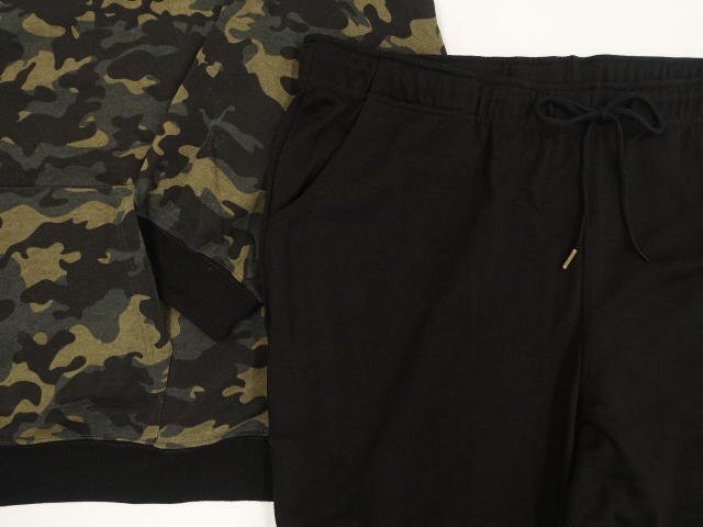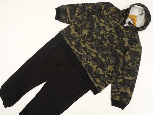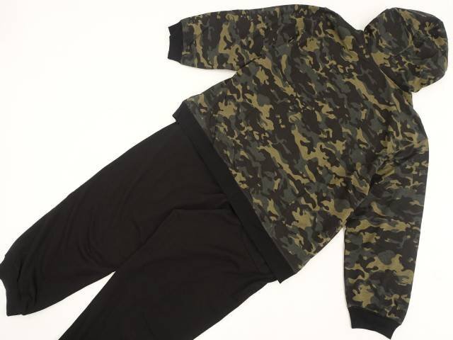 長袖プルオーバーパーカー+スウェットパンツ 上下2点セット 8L グリーンカーキ×グレー×ブラック 迷彩柄/ブラック