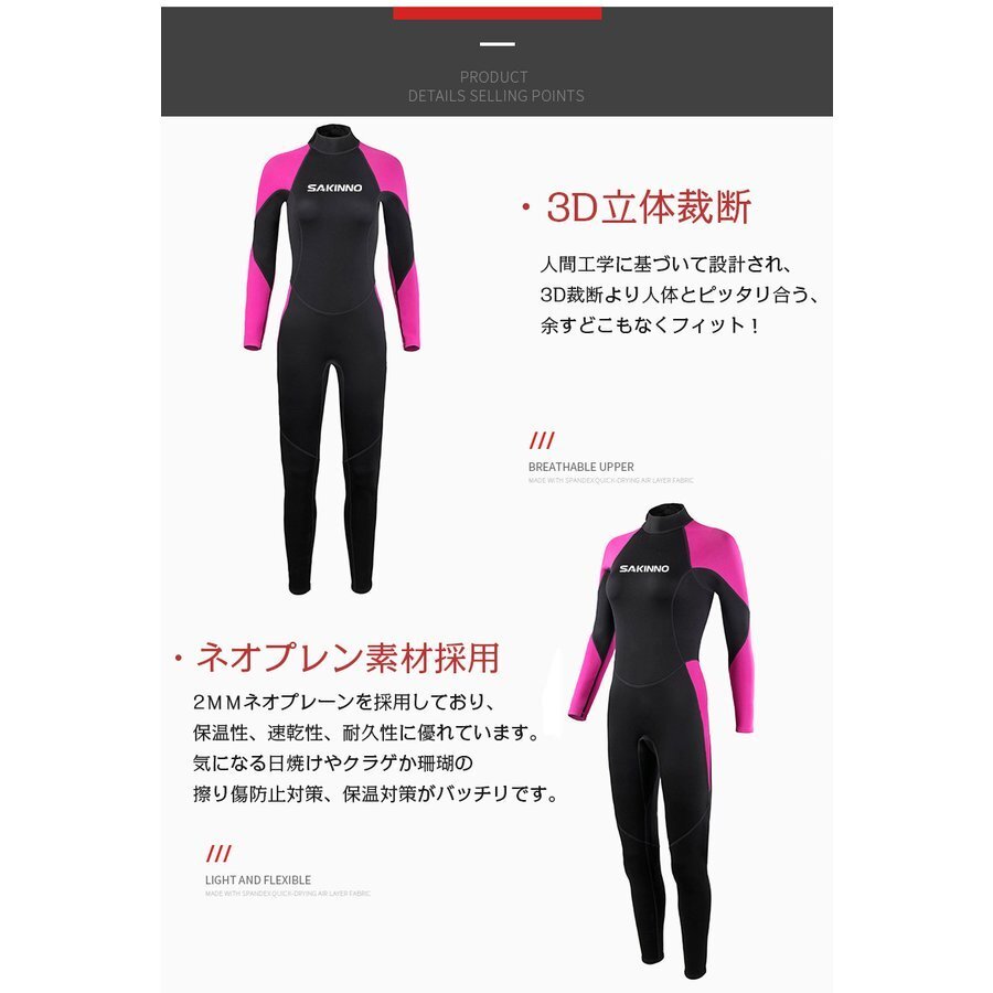 フルスーツ ウェットスーツ レディース 2mm 長袖 水着 防寒 保温 ネオプレーン ダイビング バックジップ仕様 マリンスポーツ シュノーケリング MS107