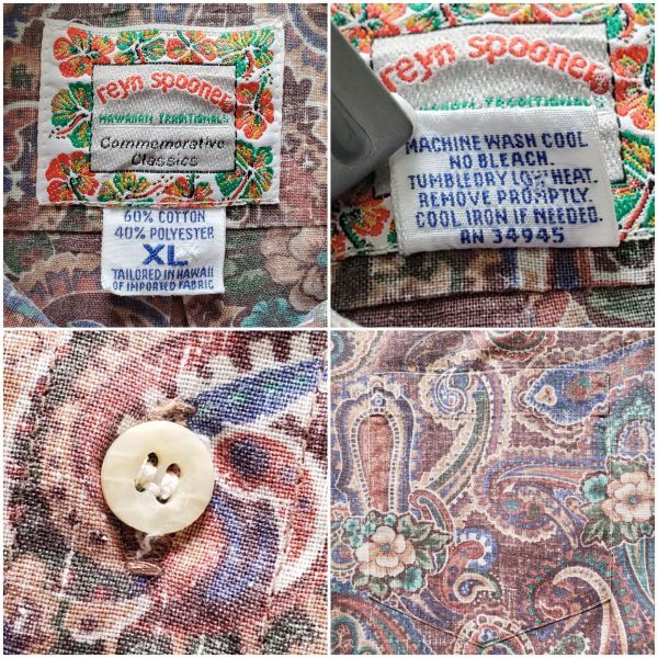 Reyn Spooner レインスプーナー■美品 90s vintage ペイズリー柄 半袖 裏地 コットン ハワイアンシャツ XL アロハ Commemorative classics