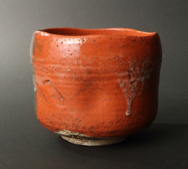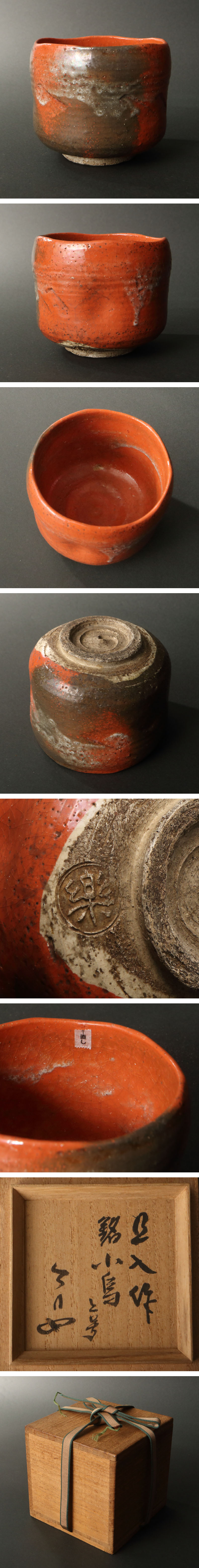 委託HK◇10代樂旦入 赤楽茶碗 円能斎書付 銘「小鳥」(茶道具 陶磁器 陶芸 赤茶碗 楽茶碗 筒茶碗 炉 裏千家 家元 今日庵 茶事 千家十職)