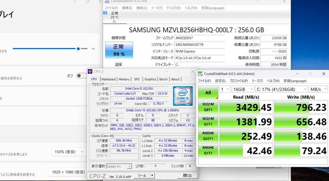 | CPU: 超高速 Intel 超高性能 第10世代Core i5-10210u 1.6Ghz、 4コア8スレッド (ターボ・ブースト利用時の最大周波数 4.2GHz) |