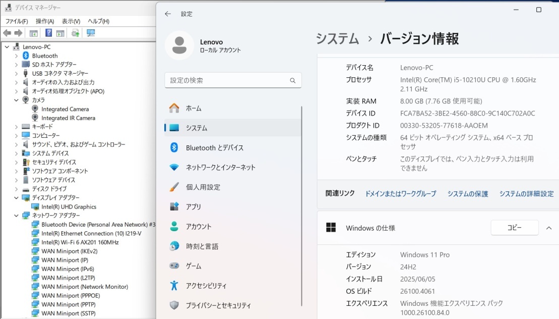 | 型番: Lenovo ThinkPad X13 Gen1 |