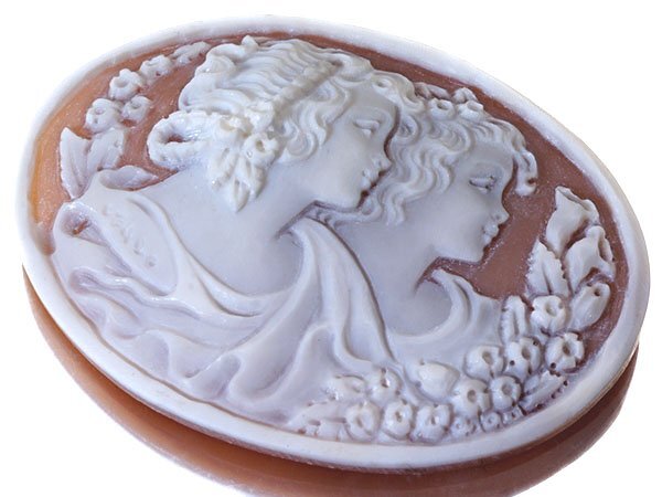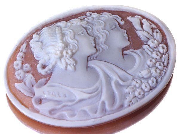 優雅な2人の貴婦人を繊細に彫刻で演出した、素晴らしい高級シェルカメオルースです!