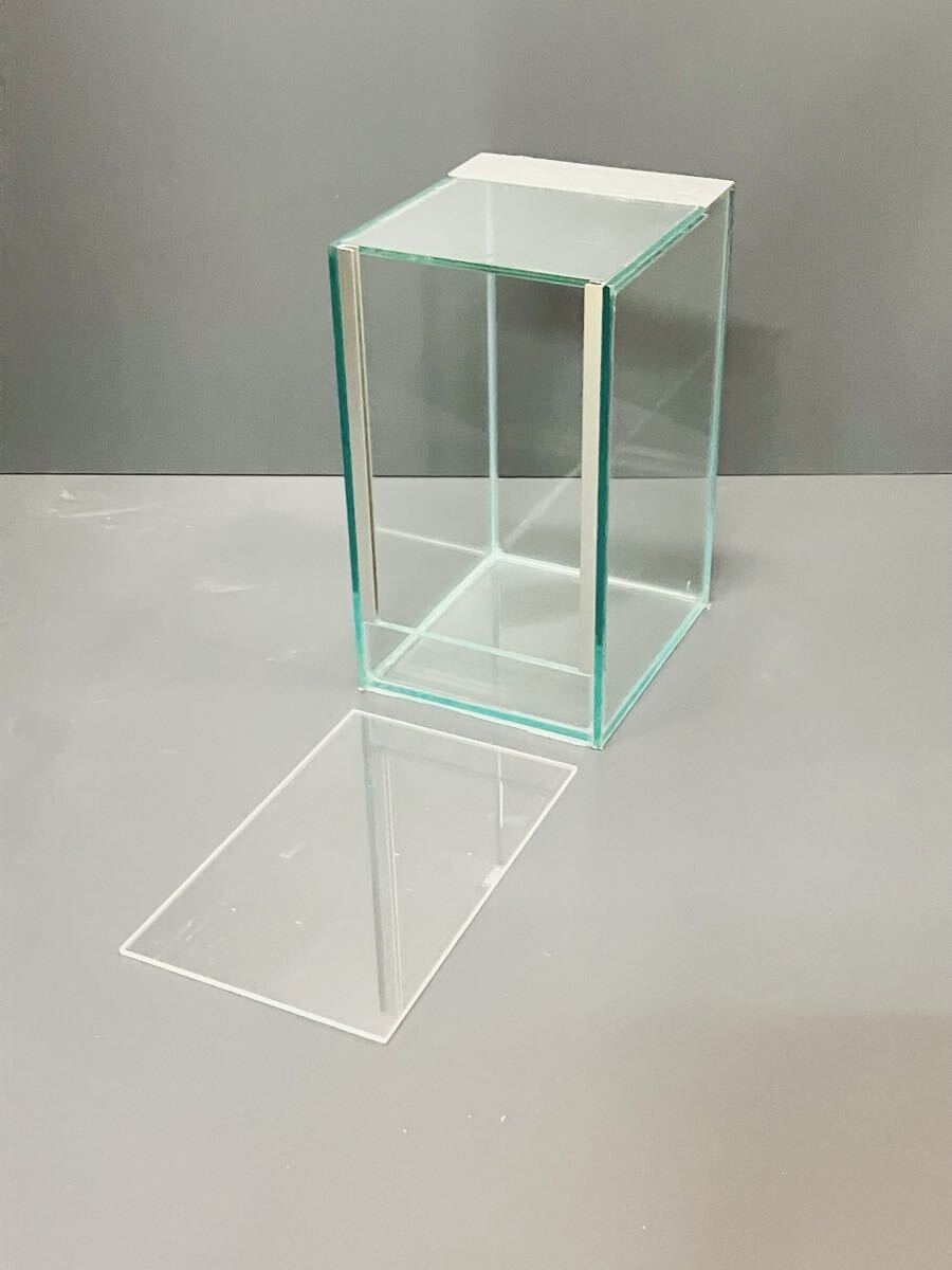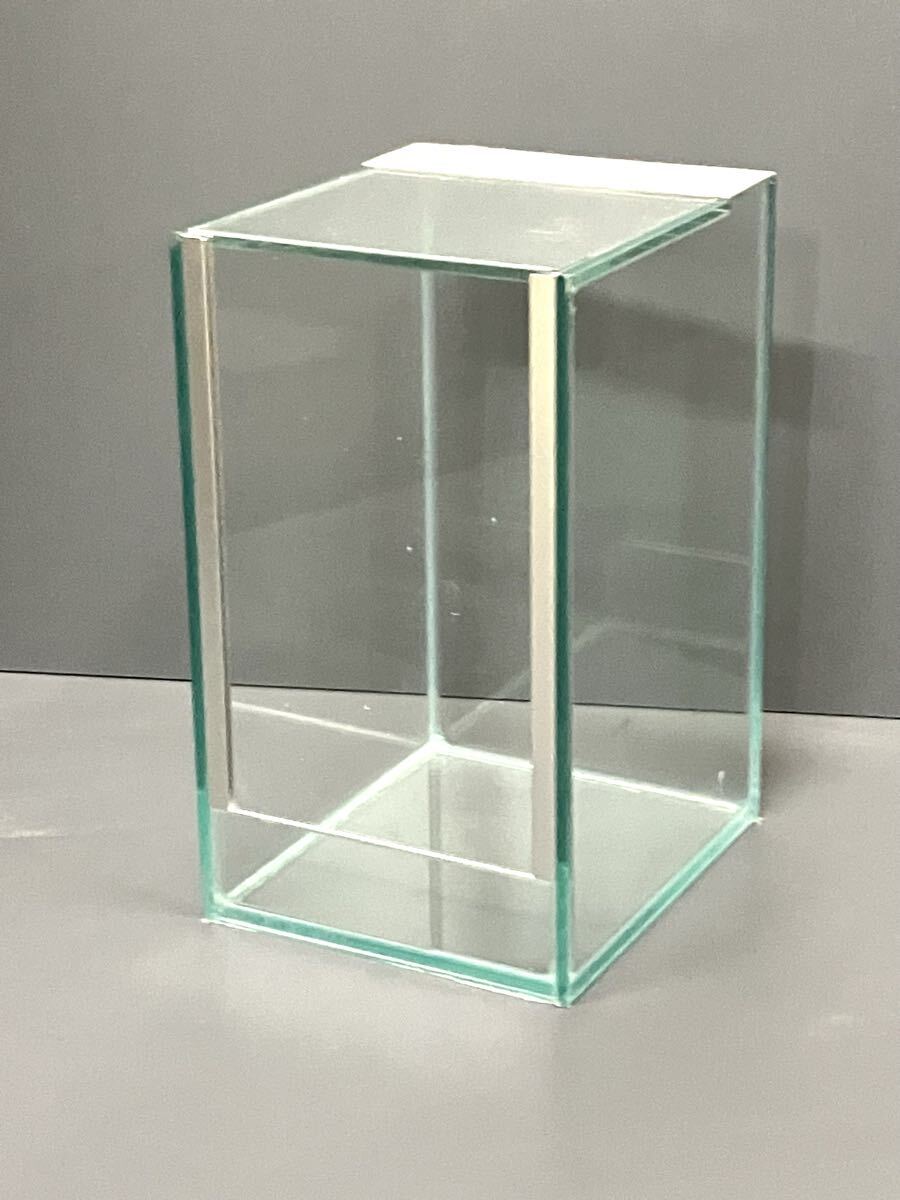 【Size:サイズ】 ガラスケース:150x150x230mm (幅x奥行x高さ) 正面下部ガラス:約40㎜(高さ) 上面前後スライドガラス+アルミメッシュ 前面アクリル 上下スライド開閉式 【Material:素材】 ガラス・アルミ・アクリル 【Collar:色】 コーキング部分 クリア 商品説明: 小型パルダリム、苔リウム用ガラスケースになります。 植物だけでなく両生類、昆虫飼育も可能です。 シンプルですが機能、通気性、見た目にこだわったケースです。 正面扉は上下スライド式で、素材はアクリル軽いため扱いやすいです。 また透明度が高く、中の植物や生体も見やすいです。 【ハンドメイド・ワンオフについて】 素材に天然木、鋼材、特殊素材を使用しておりますので材料の性質上、節・小傷、色むら、色あせ、錆が入る場合がございます。 また商品によって特殊な加工、形状にする際に小傷が付く場合がございます。 エイジング加工(さび加工)やハケ塗りハケ跡を残す場合がございますが 上記記載内容全て使用上に問題の無い商品の特徴、仕様としてご理解下さいませ。 |