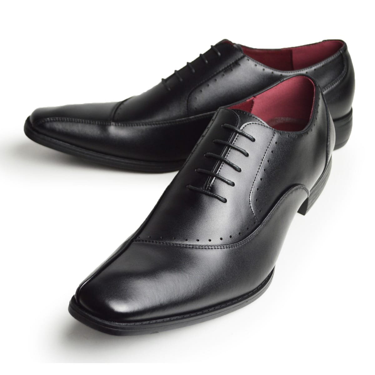 ビジネスシューズ 革靴 レースUP ストレートチップ ライン 脚長 スクエアトゥ ロングノーズ 2E 日本製 フォーマル 紳士靴 nc763