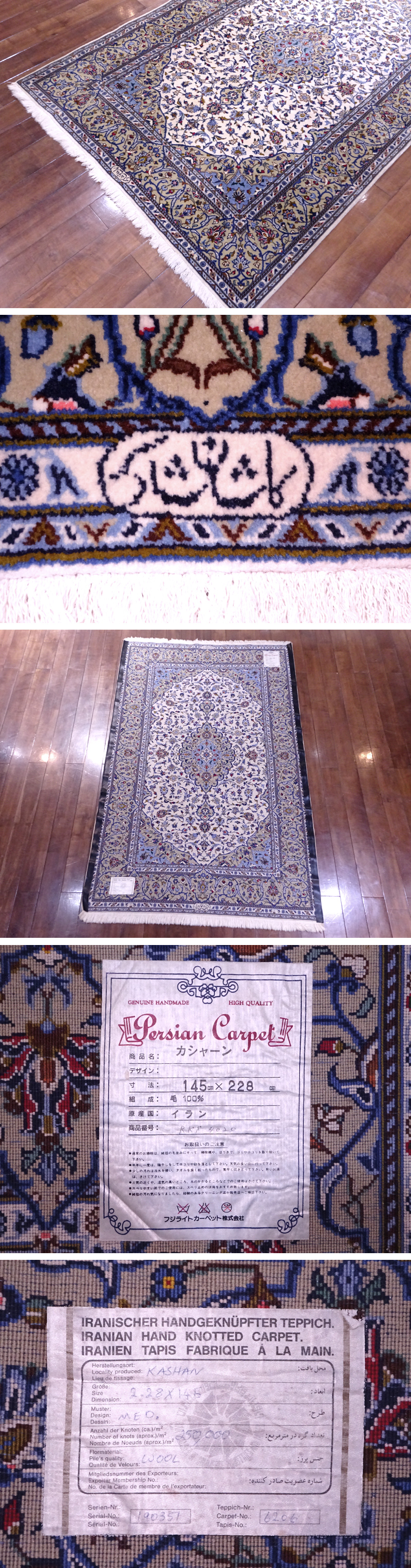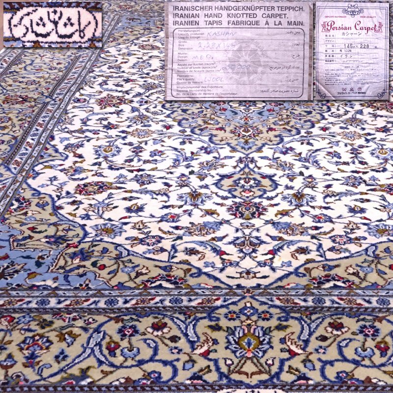 ∇花∇世界最高峰!至高のペルシャ絨毯 カシャーン産 上質ウール100%総手織 メダリオン文様 工房サインあり 228×145㎝ 40