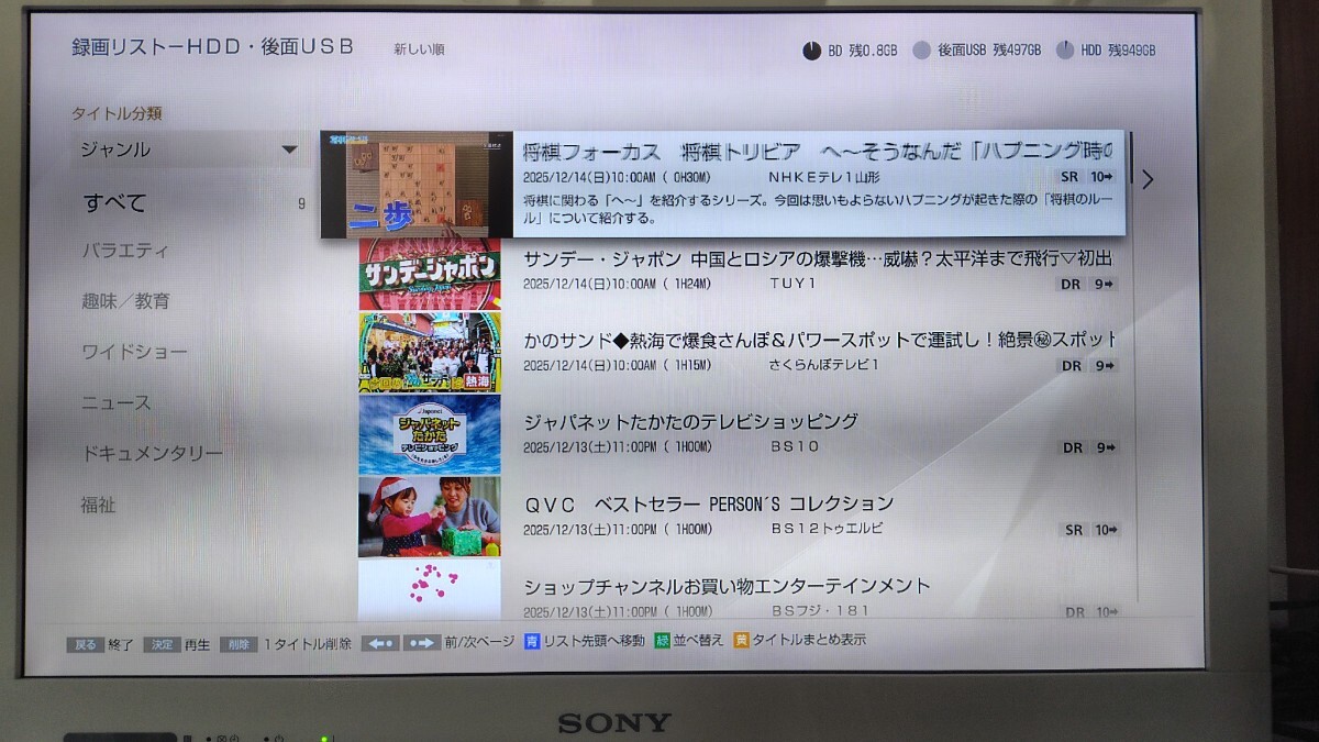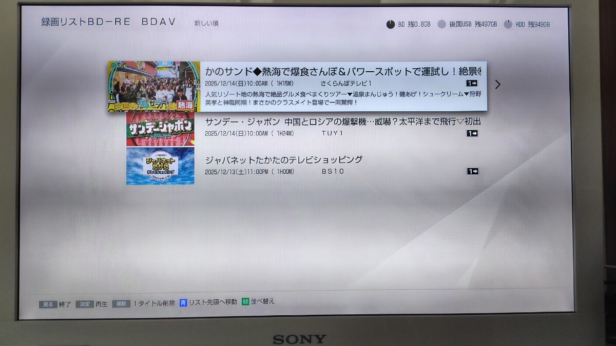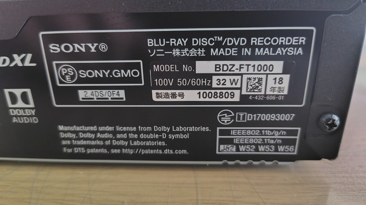 2018年製 SONY BDZ-FT1000