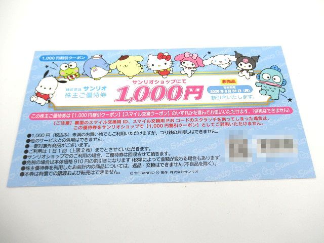 | ◆未使用品◆株主優待券◆ サンリオ株主優待券×3枚 1000円割引クーポン券or スマイル交換クーポン×1枚 有効期限:2026年8月31日 【未使用品】 管理番号:35905/H3S4 未使用保管品です。 多少の反り等がありますのでご了承ください。 ご利用方法のお分かりになる方のみご入札をお願い致します。 商品は画像の物が全てです。 商品の状態等は画像にてご確認ください。 ※新品の様な完璧な状態では御座いません。 ※ご理解頂ける方のご入札をお願い致します。 ご入札前に必ず全文をお読みになり、 お客様が十分にご納得された上でのご入札、 ノークレーム・ノーリターンでお願い致します。 入札の取消は行っておりませんのでご注意下さい。 (ご入札された時点で同意頂いたものとします) ※画像のものがすべてになります。 ※保管品の為、多少のスレキズ等ある場合が御座います。 ※専門知識が無いため質問にお答えできない場合が御座います。 ※素人検品・撮影の為写真に写り切らない汚れ・キズがある場合が御座います。 ※新品の様な100%完璧な状態では御座いません。 ※念入りに検品しておりますが見落としがある場合が御座います。 ※神経質な方、完璧をお求めの方は入札をお控え下さい。 ※御理解頂ける方のご入札をお願い致します。 ※まとめてお取引には対応致しません。 全て単品でのお取引となります。 ※同梱は行っておりません。 ※商品管理上、取り置きは致しませんのでご了承下さい。 |