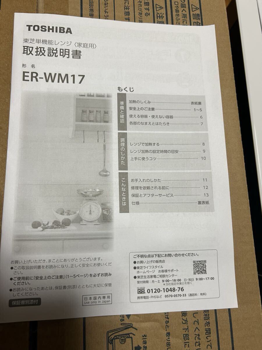 東芝 単機能レンジ ER-WM17-W(ホワイト)