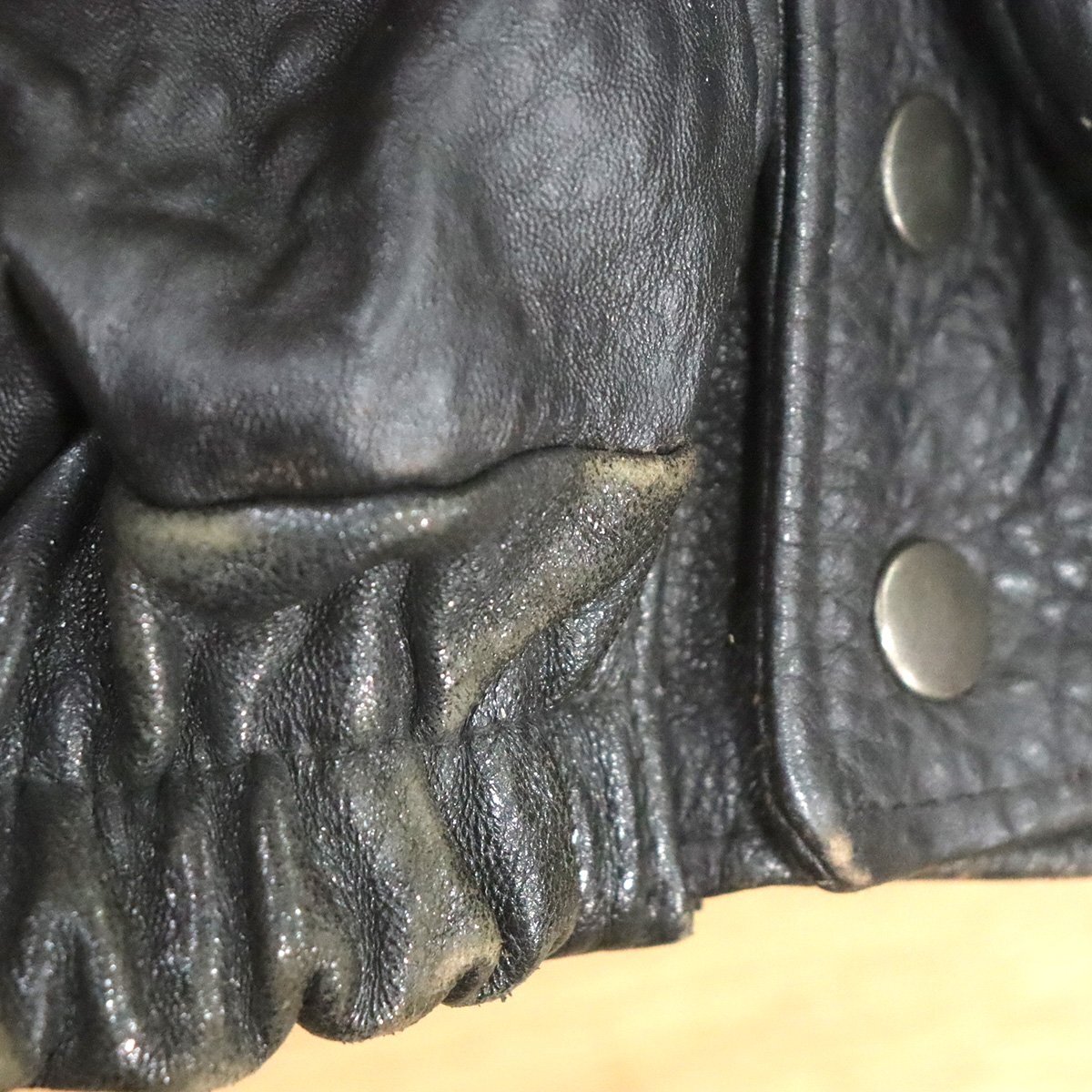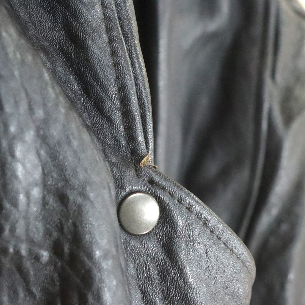 中古品です。使用感があります。全体的にシボ感、各所に擦れ、汚れ、剥がれ、擦り切れ、裏地に糸引き、内ポケットに破れがあります。袖が取り外し可能で、ベストとしても着用できます。