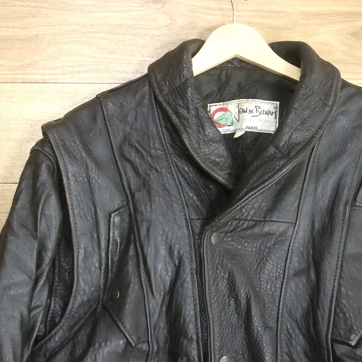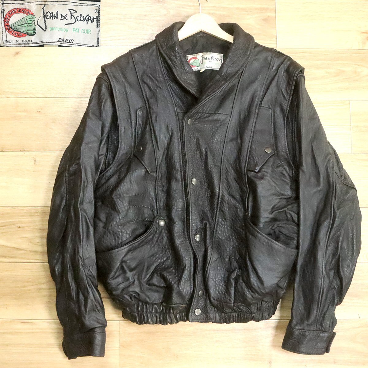 B3S/S12.10-1 フランス製 JEAN DE BELKAM レザージャケット 本革 ボンバージャケット 2way 袖脱着可 メンズ 革ジャン 皮ジャン